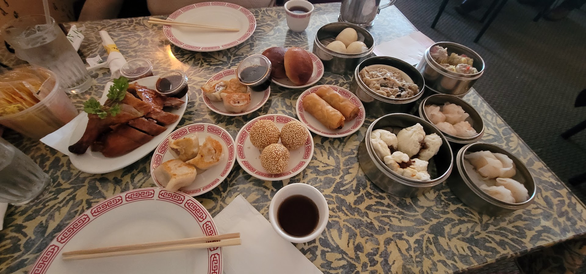 Everything we ordered looked great when it came out, however, most of the dishes were cold. I guess it was suspicious how quickly all the dim sum dishes came out. Like the baked pork buns were room temperature cold. The only dishes that were warm were the ones on the steamers like shumai. Even the roast duck was cold. Luckily everything we ordered tasted good. And my favorite egg custard tarts hit the spot. They were also cold, but I'm just happy to have some.