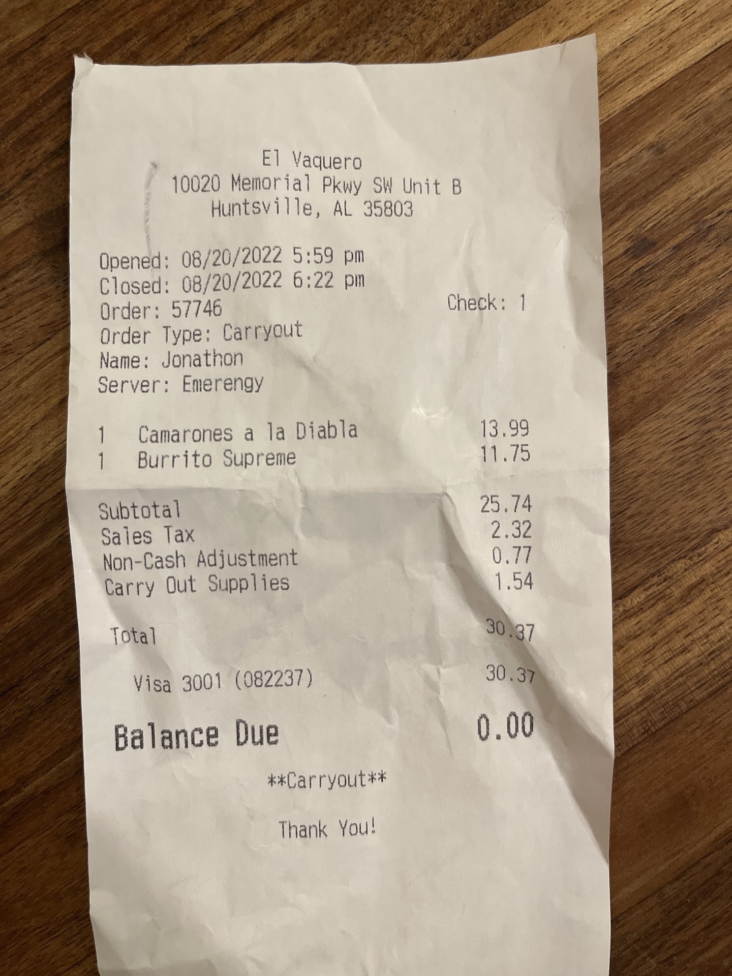 Bottom line: if you want tasteful Mexican food served quickly and hot (temp wise), with friendly service in a clean, inviting environment, all for a good price, ride on over to El Vaquero located in front of the South Parkway Home Depot.