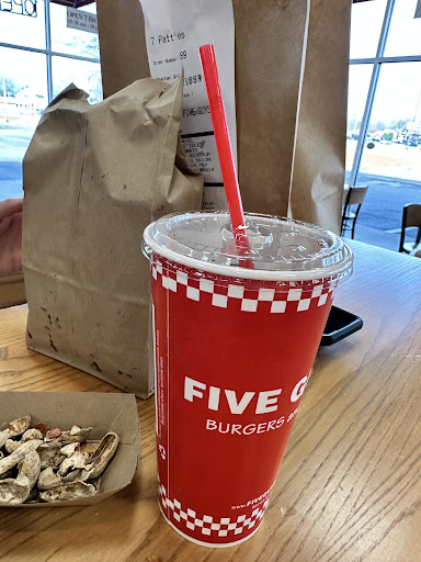 Read moreWe hadn’t been to Five Guys in forever because of obvious price gouging, but it was a nice treat after a long week!! Knocked a star off because for two people, and then 2 plain patty burgers for our pups, it was $50!! For fast food, that’s ridiculous. On top of that, the card machine was having major issues and we swiped 2-3 different cards back and forth on each machine numerous times. It finally worked after a system reboot, but for a second it definitely seemed like we might’ve not gotten anything at all after ordering. Overall, the food quality was as good as I remembered. Still delicious and flavorful. The fries are the best and they always give a good handful! Even sitting there to eat would have been enjoyable. It wasn’t loud and was overall very clean. They still have peanuts out to enjoy which was refreshing unlike most places nowadays. If the prices could go back down, that...