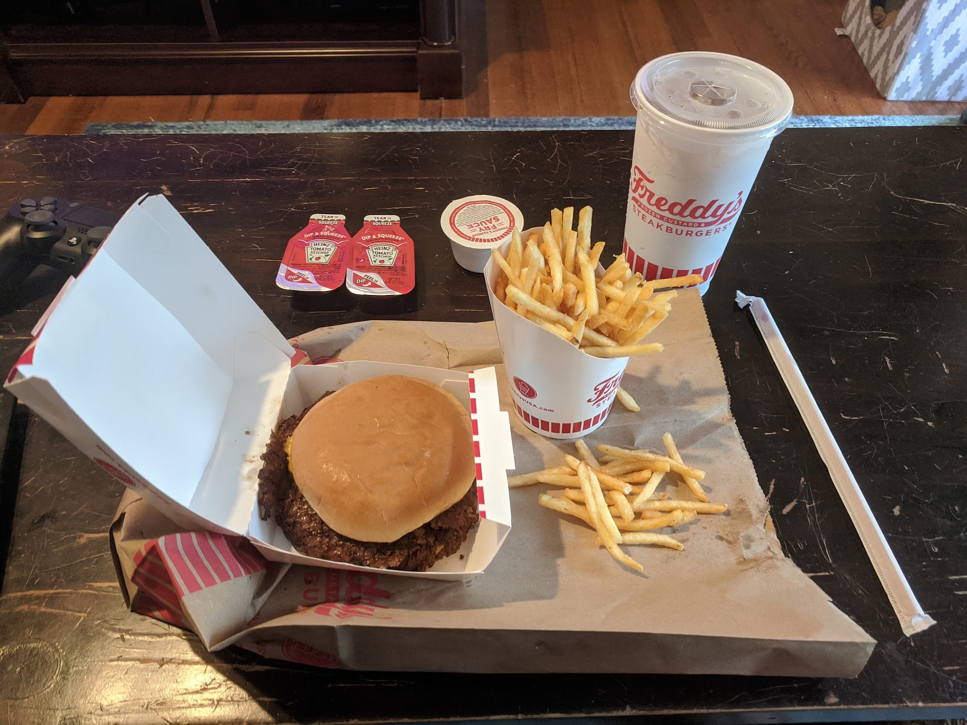 Read moreI ❤️ Freddy's hamburgers!!! I think having hamburger meat smashed so thin and crispy you can almost see thru it is perfect, then they also have shoestring fries with Freddy's fry sauce!! Goodness, just writing about it makes me want to jump in the car and go!! The shakes and onion rings are another thing that is a can't miss. Order them, yummmm. The ice cream is a custard style and certainly worth getting. Order it and ask them to hold it until you're ready so it doesn't melt while you eat your wonderful burger, then just let them know you're ready and bam! It's made, no waiting. My only complaint is that the closest Freddy's is at least a 30-minute drive! Bummer. Oh well, if I leave now, I'll be muching down soon!! See...