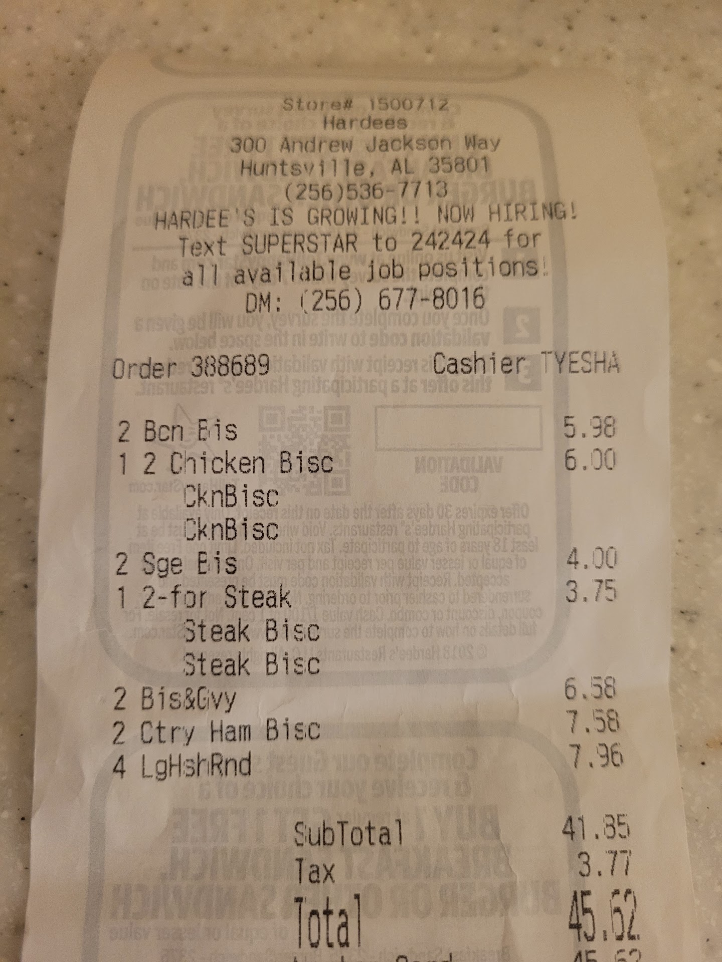 Read moreThey don’t take tap pay in the drive thru? Ok whatever I’ll come in. M You do realize it’s 2023? You mean to tell me after Covid you don’t offer a hands free way to pay in the drive thru? Ok simple solution I’ll park come in and pay. Wait what? The doors are locked at 7:39am in a Friday? So I can only pay via wooden nickels at the drive thru and the only alternative you have given me is not an option for a unknown reason. Ok at that point could you not have lifted your little reader up to the window and let me tap my phone to it? I see the cord is long enough. We live in the most technology driven city in the country and y’all can’t figure out hands free transaction through a drive thru? Not trying to put a man on mars here, not inventing the wheel or the internet just would like to pay how I pay at every other Hardee’s at EVERY other fast food place I’ve been to. They seemed to have solved the riddle or are trying to spread disease and misery instead of smiles and sausages? ;). Frfr very...