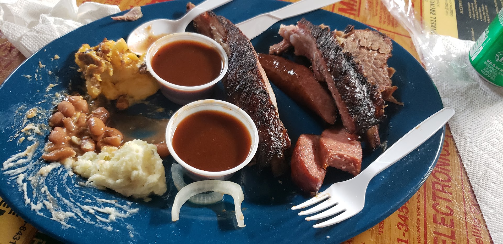 Read moreIf you are from Texas or any other place where barbecue is like super smoked really this is not the place. The service was excellent. The atmosphere was excellent. The cashier was amazing but when I got back to my hotel room, I ordered a baked potato stuffed baked potato with barbecue chicken and I’ve never had anything like this in my life. This was I’m so sorry it was disgusting. It was gross. The meat had no smoke flavor. I was looking for a barbecue baked potatoes smoked meat. This taste like ummm well it didn’t have a flavor at all and I’m not kidding. So if you’re touring or if you’re visiting this will not be the place for you to go for barbecue IF you’re from Texas I’m only speaking to my Texas folks because we know how we like our barbecue and the baked potatoes were so small. I should’ve taken a picture. In Texas, Oh my gosh it takes up the entire plate. The cashier told me oh yeah, we have large potatoes. Oh my gosh this was the smallest potato and I didn’t need a big potato but I’m just saying it was so...