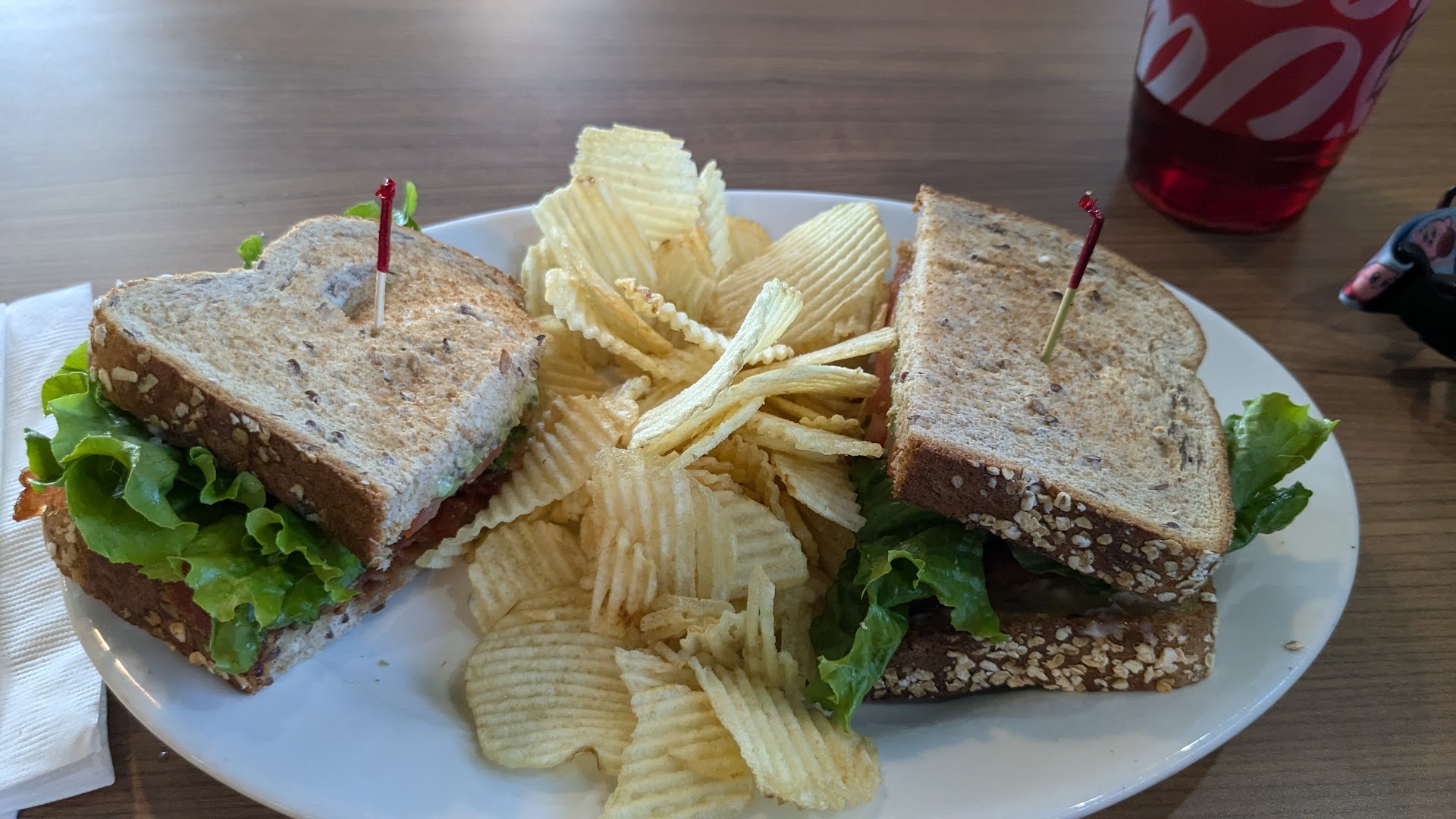 They have your average deli type food, with soups, salads and sandwiches. I've had a few different sandwiches here and they are good sandwiches, but for the cost I don't necessarily think it's a great value. A sandwich with a side and drink will usually cost me $10 - $12, but the quality isn't anything Tuesday wire home about. I also usually ask for no mayo on my sandwich, but it's still on my sandwich at least 50% of the time. A cup of soup will usually cost about $4 - $5 and again isn't great at that price point. Service is usually ok, it's generally pretty slow in my opinion, but the staff is always very nice. The salad bar is decent and if you're going to come here, the salad bar would be what I recommend.