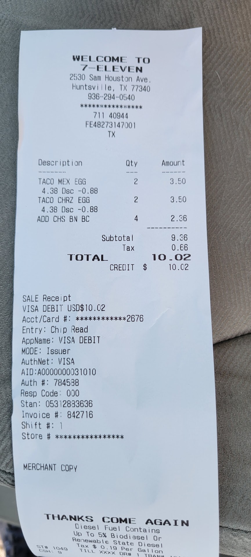 Oh, and here's a pic of their sign that says tomatoes and onions are free and also my receipt where they charged me for beans AND CHEESE, even though I specifically did not want cheese.