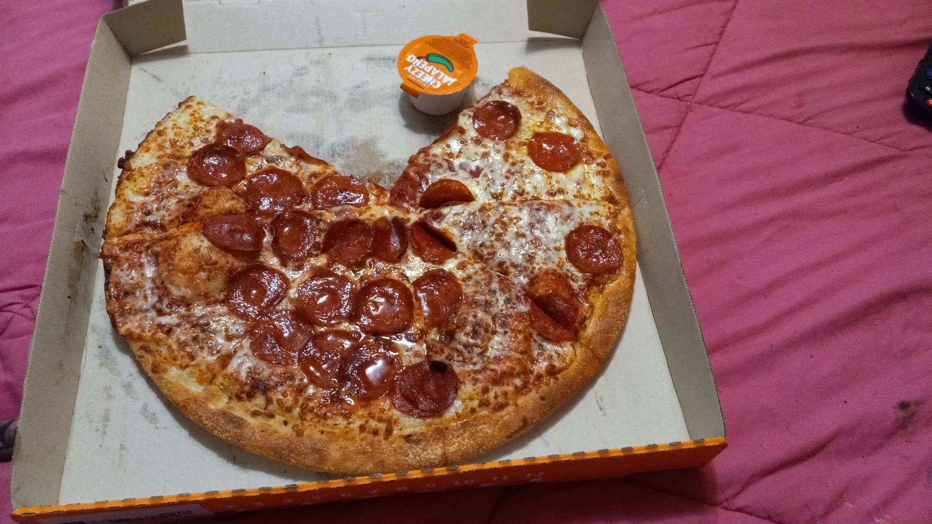 My wife was sitting the car and called me, said people are leaving with Cheesy Bread and Pizza that came in after you.