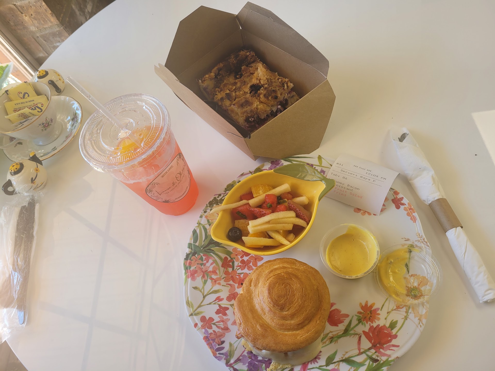 Ā Ā Ā Read moreOur first visit to this 'teahouse' and was so hoping it would be good. However, the food just isn't up to par ! The flatbread that I got was EXTREMELY hard and I was honestly afraid I was going to break a tooth trying to eat it. I paid $ 13 for it and it wasn't really edible although I forced myself to eat it because I was so hungry. My husband got a sandwich that was supposed to be on a croissant but the version of a crispy, flaky croissant isn't what he got. Theirs was more like round 'bread' with no flaky, fluffy texture. However, he said the chicken salad inside of it was pretty good. There were several people there, so I didn't want to cause a 'fuss' out of respect... but should have requested a refund on my plate ! First impressions are everything, and unfortunately it...