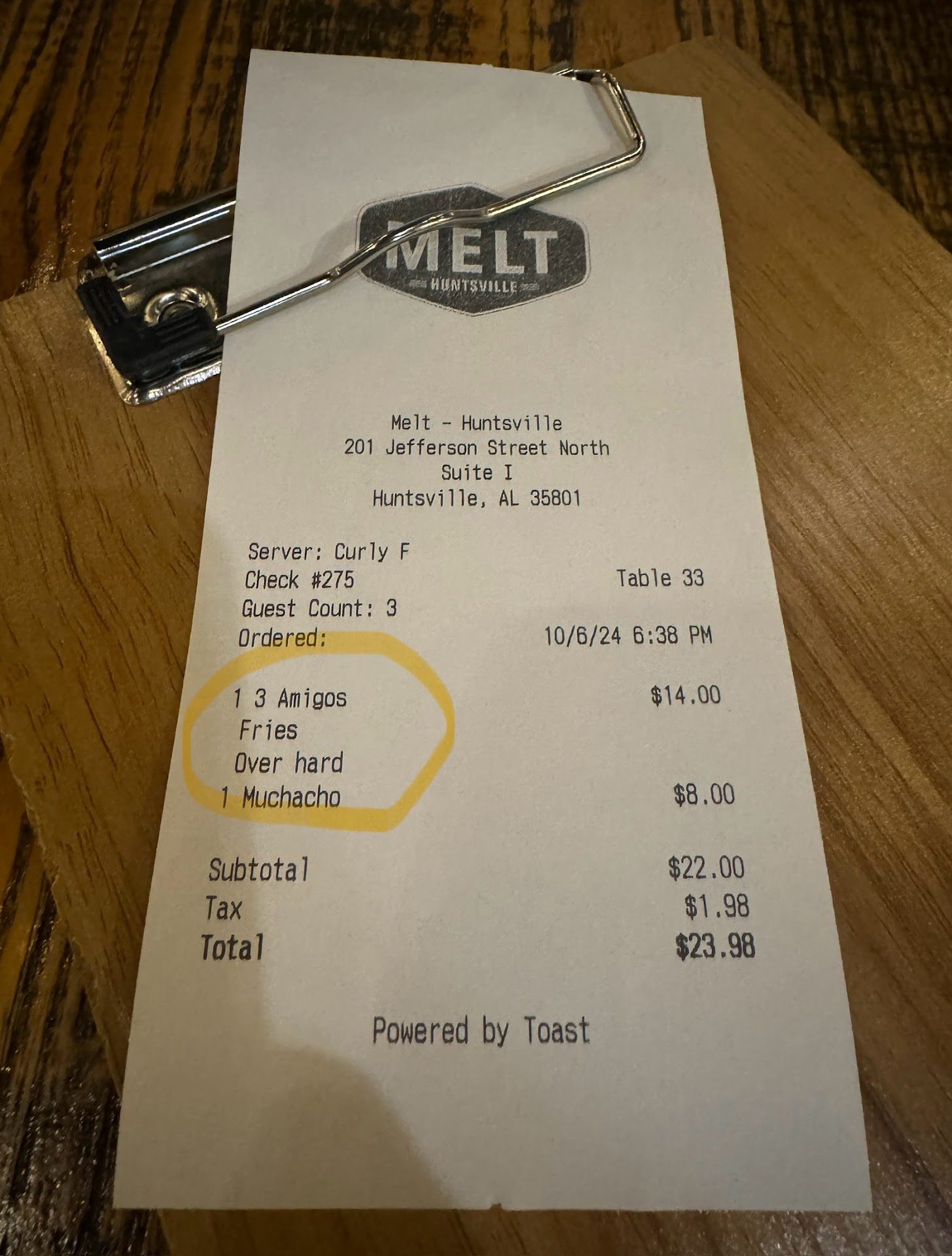I’m attaching a picture of the check and the menu… pretty obvious to me…