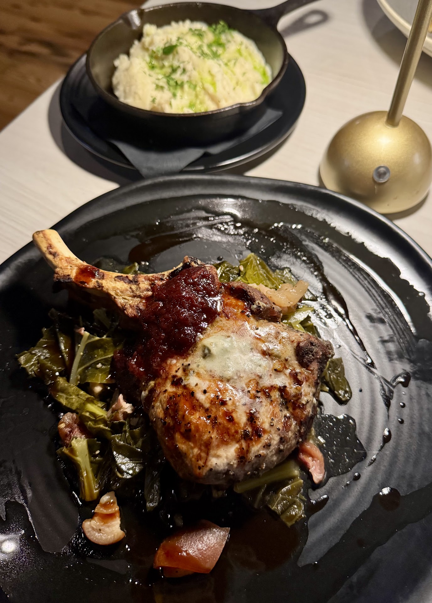 Read moreMy husband and I were excited to try this place. The atmosphere and decor from the pictures we saw from grand opening drew us in. What we experienced: The service was slow. We asked for recommendations from the menu and the server didn’t know what to recommend. I understand it’s a new restaurant, but the servers should have more knowledge with the menu. I love the names of the drinks on the menu and how they incorporated Huntsville in it. My husband and I started with cocktails, the mussels, and the shaved asparagus salad. We wanted to try the lentil salad, but they said it was already premixed so you couldn’t take out of on the ingredients which was a no go for us. The mussels were bland. They were in a butter wine sauce, but other than that there were no other flavors. The shaved asparagus salad was good. I would recommend that. Also the mussels came with truffle fries and those were good as well, another recommendation. For our meal we got the Angry Prawns and the Pork Chop with a side of whipped potatoes. The Pork Chop was very dry and tough and the whipped potatoes were gritty. So I wasn’t impressed with those. My husband said his entree was only alright. I wanted to try the Green Mountain cocktail as my dessert drink, but our server said the smoke bubble wouldn’t be on it so I opted out. Also on the menu there is a QR code for you to explore more options. The page was blank/temporarily unavailable when scanning it. Again I understand it is a new restaurant, but the QR code should not be advertised until they work. The menus can always be reprinted once the QR code works. We opted out on desserts because we just had a so so experience so we thought the desserts might be so so as well. The bathrooms were very nice. I felt like I was in an upscale dressing room while in the bathroom stalls and there was a sink in each stall which was nice. This place has a lot of potential. I hope it only gets...