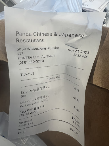 Read moreCame into Panda Express thinking oh yaaa orange chicken. Then come to find out it’s not a Panda Express, but it’s own place. Which made me happier. I haven’t found lemon chicken anywhere, they had it. I got that , egg drop soup, & 2 egg rolls. Cost me a little over $25. The egg rolls were light & crispy. The soup was delicious with the crispies. The lemon chicken was good, a big serving. But the lemon sauce seemed a more honey sauce with a hint of lemon. Good though, a bit sweet. And very, very sticky. I barely touched the container & the stickiness was everywhere! Even places I swear I didn’t touch! I will be back, the food was so so good! You know when you have food from somewhere & others see & say “ from such & such? Ya they have good food!” I got that a lot when I ate this at work. So yes...