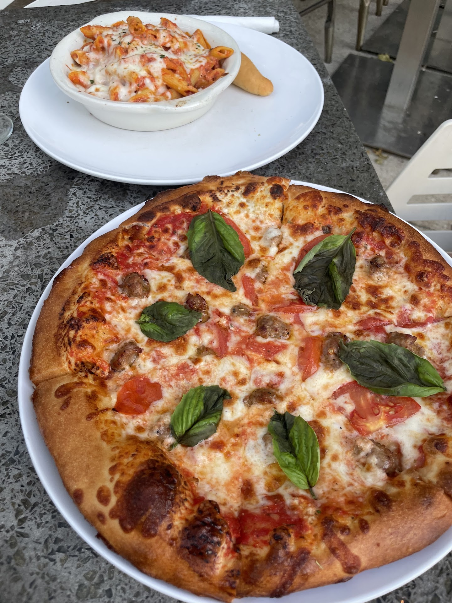 We were promptly seated out on the patio where we could people watch and enjoy the weather. Our drinks orders were taken promptly and we decided to order a few different pizzas. My daughter and I split the 16" Clemenza. It was was delicious -- the pepperoni and italian sausage pizza was great. I particularly enjoyed the thinly cut bell peppers (usually they are a tad raw and huge - these were very thinner sliced and cooked well). If you love sauce, I'd get some pizza sauce on the side to dip crust, that was the only downsides of the meal. The wife ordered the Da Vinci pizza which I was not a fan of; why would you order a pizza and then put a salad with balsamic vinegar on top? But she loved it and thought the pizza was very fresh. My youngest daughter got the kid's cheese pizza and it was awesome. It had great cheese pull and she scarred the whole thing. This was not one of those 'kids will eat whatever' meals, this was a great pizza in its own right. We got some Tiramisu to go and it was also delicious later at home.