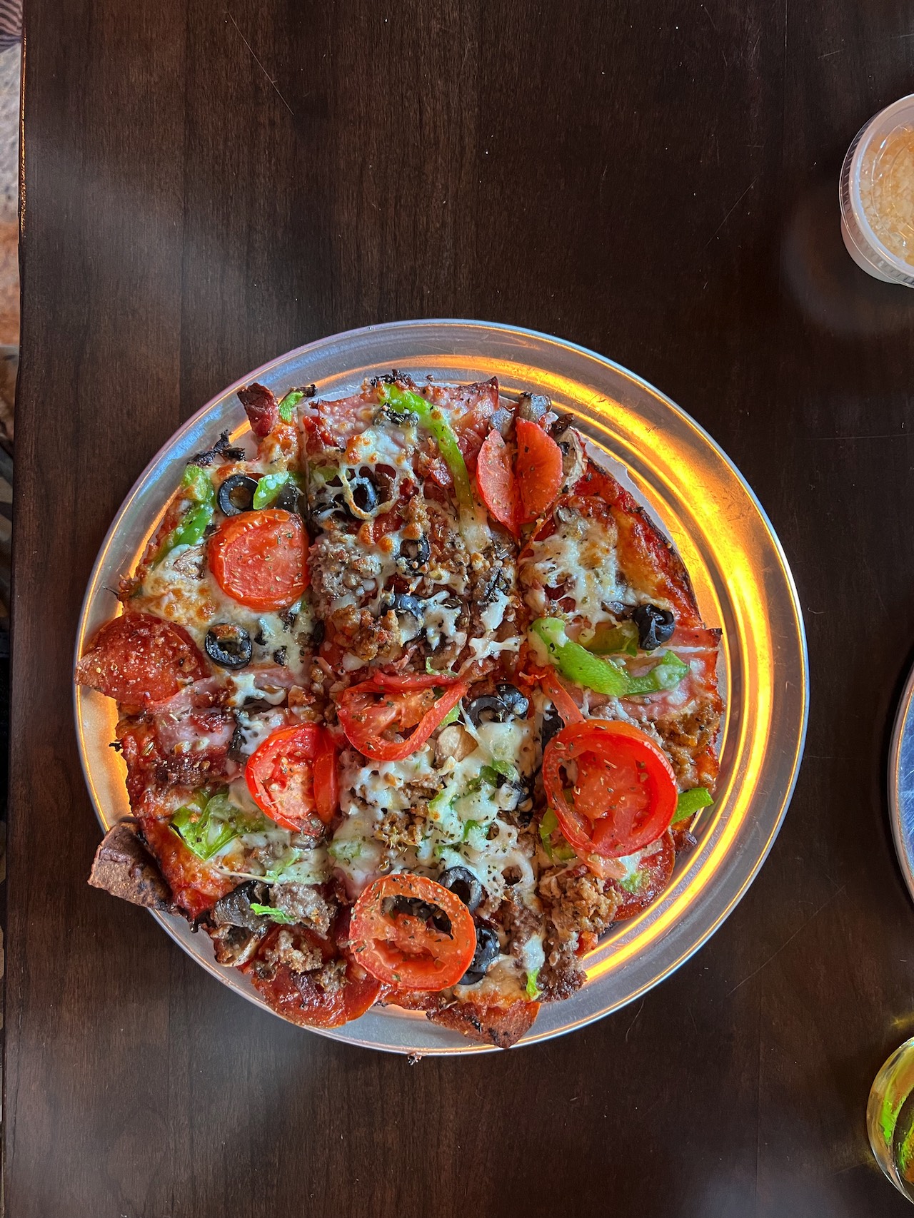 -Menu has enough options on it that makes me think a majority of what is on offer starts off frozen instead of fresh. -Service leaves a lot to be desired. Our server didn't introduce herself, took a while longer than desired to deliver drinks and left us alone for a long time because she thought she had already taken our order even with the menus still in front of us. -Did not repeat back our order and so brought out a steak salad instead of a small steakhouse pizza. When this was pointed out, the server had an immediate dispassionate response of 'Oh I didn't hear that', that I have heard multiple times over my fifteen years as a waitress that's like nails on a chalkboard for customer service. Again, that's why you repeat the order back to your customer to ensure you wrote it down correctly. -Because of this, one of our number didn't get to eat her food as we were all done by the time her pizza arrived. -Food was a B- altogether for middling quality but higher price point than expected for its fare. -Service was an F for lack of attentiveness, order-taking procedure, and quickness of any kind. No attempt at reparation was made. It's not like we asked for a free dinner, but a genuine apology for making someone sit there and watch while their family eats dinner would have been nice. -Most likely, I'm sticking with Grimaldi's or The Boot since there you get what you pay for.