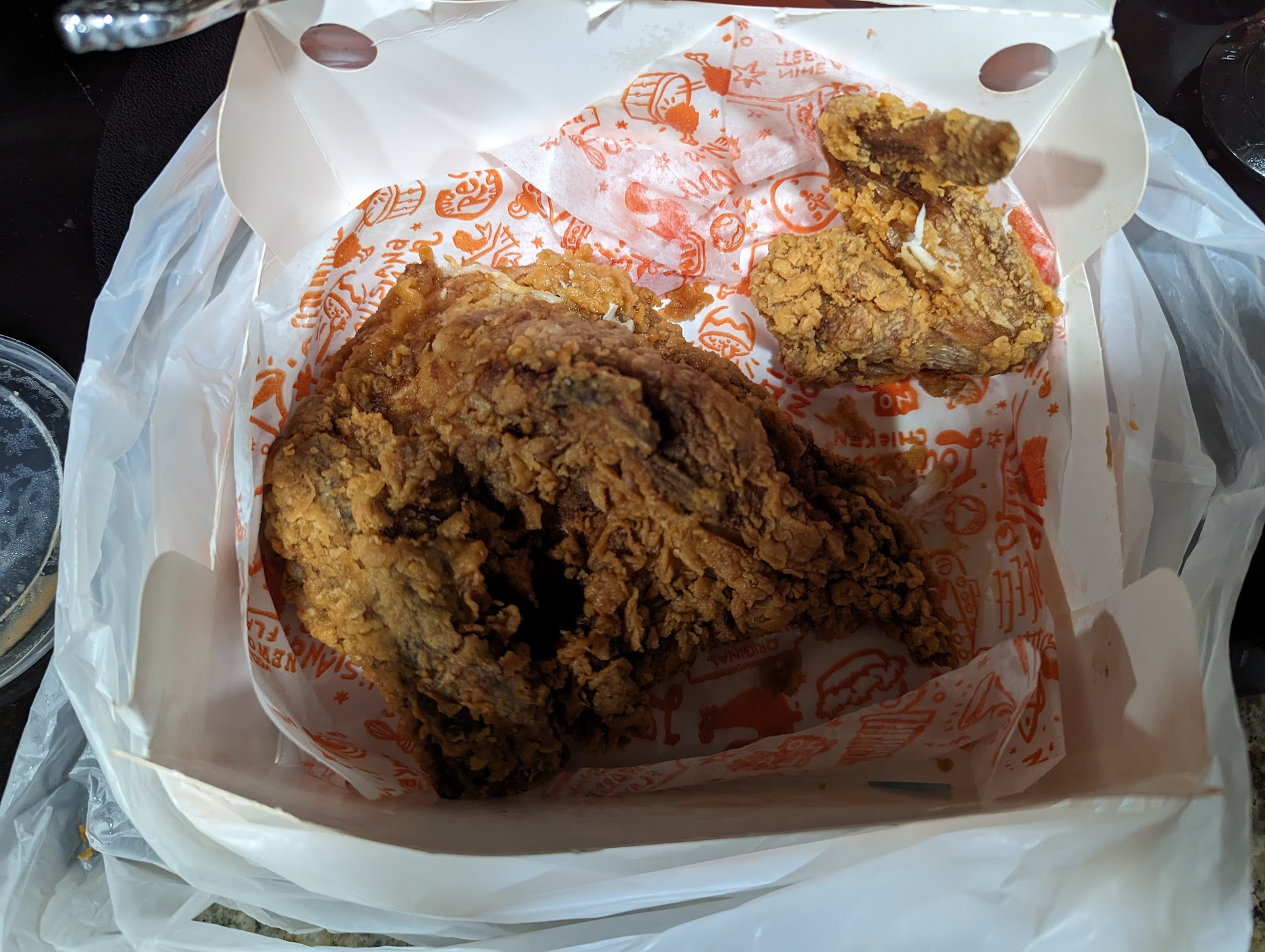 Read moreI went inside to buy some food, but everyone was too busy to take my order, even though they walked by the registers several times. I ended up having to walk out without food. ............ I decided to give the app another try to see if it wasn't just a glitch that day. After placing my order and paying for it, I showed up at the restaurant only to find out it had closed early. I don't understand why the app would allow a person to place an order when they knew it could not be picked up. This restaurant deserves the one star I am giving it. The lesson is - never use the app for this restaurant. Luckily, the app made it easy to get a refund, but can't replace the time stolen from me. .................... This visit was much different. I used the app and got an email confirmation, but the restaurant did not get it until 20 minutes later. I waited at the restaurant for 35 minutes for my order while folks who walked in got their orders in about 10 minutes. I don't think I'll be using the app in the future. ................. The restaurant was clean, and the staff was cheerful and polite. It took 10 minutes from walking in the door to getting my 8-piece chicken box with biscuits and red beans and rice side. The food was as expected...