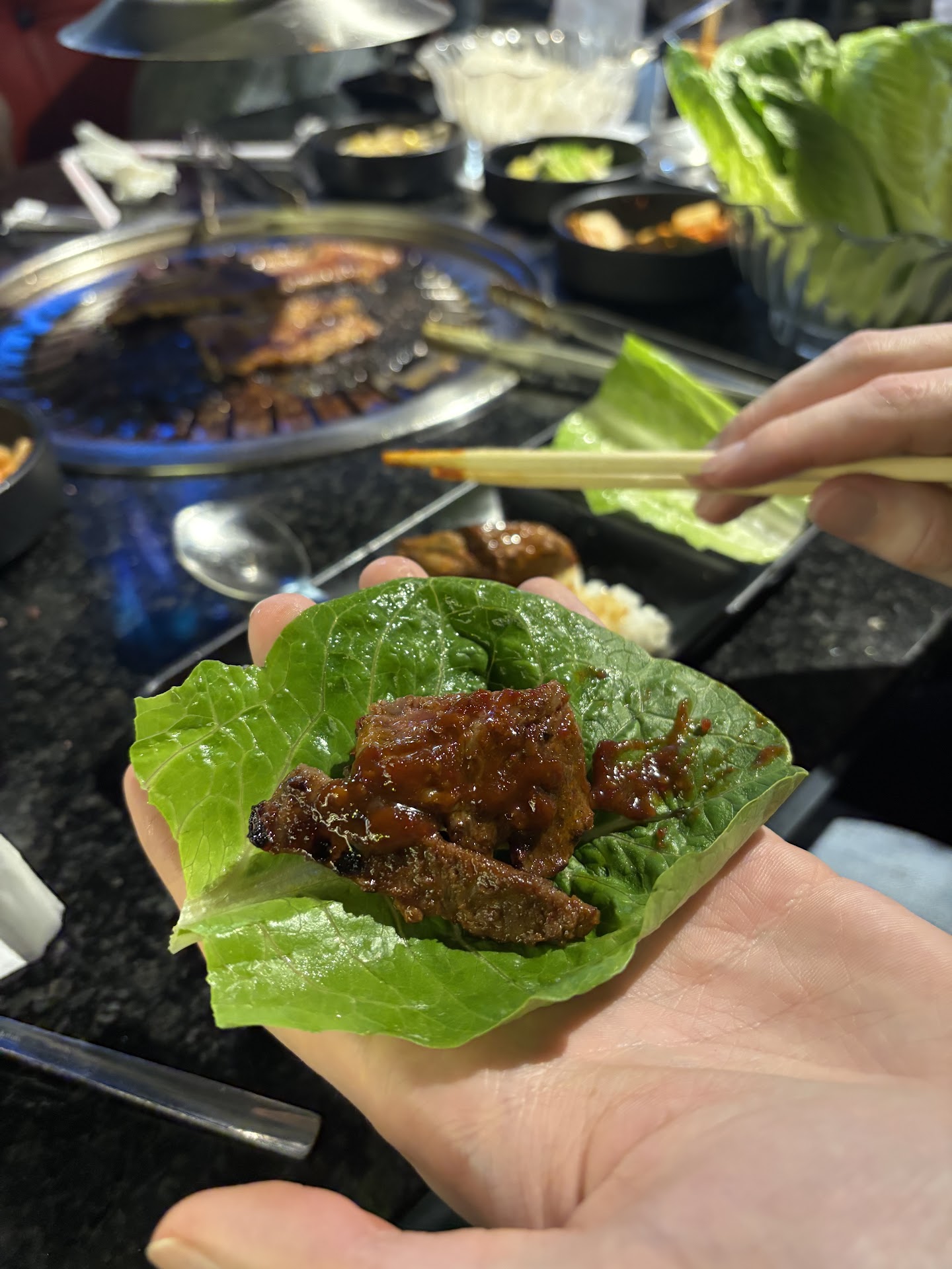 The sides (banchan) were just okay. The taste of the kimchi (which seemed on the fresher side) was good for some that aren't adjusted to the strong flavor of fermented food. As a kimchi fiend, i personally like a more sour kimchi with my meat for bbq- that didnt stop me from eating it whatsoever. The seasoning was good, maybe slightly less salty than im used to, but the flavor is there. Not very spicy.