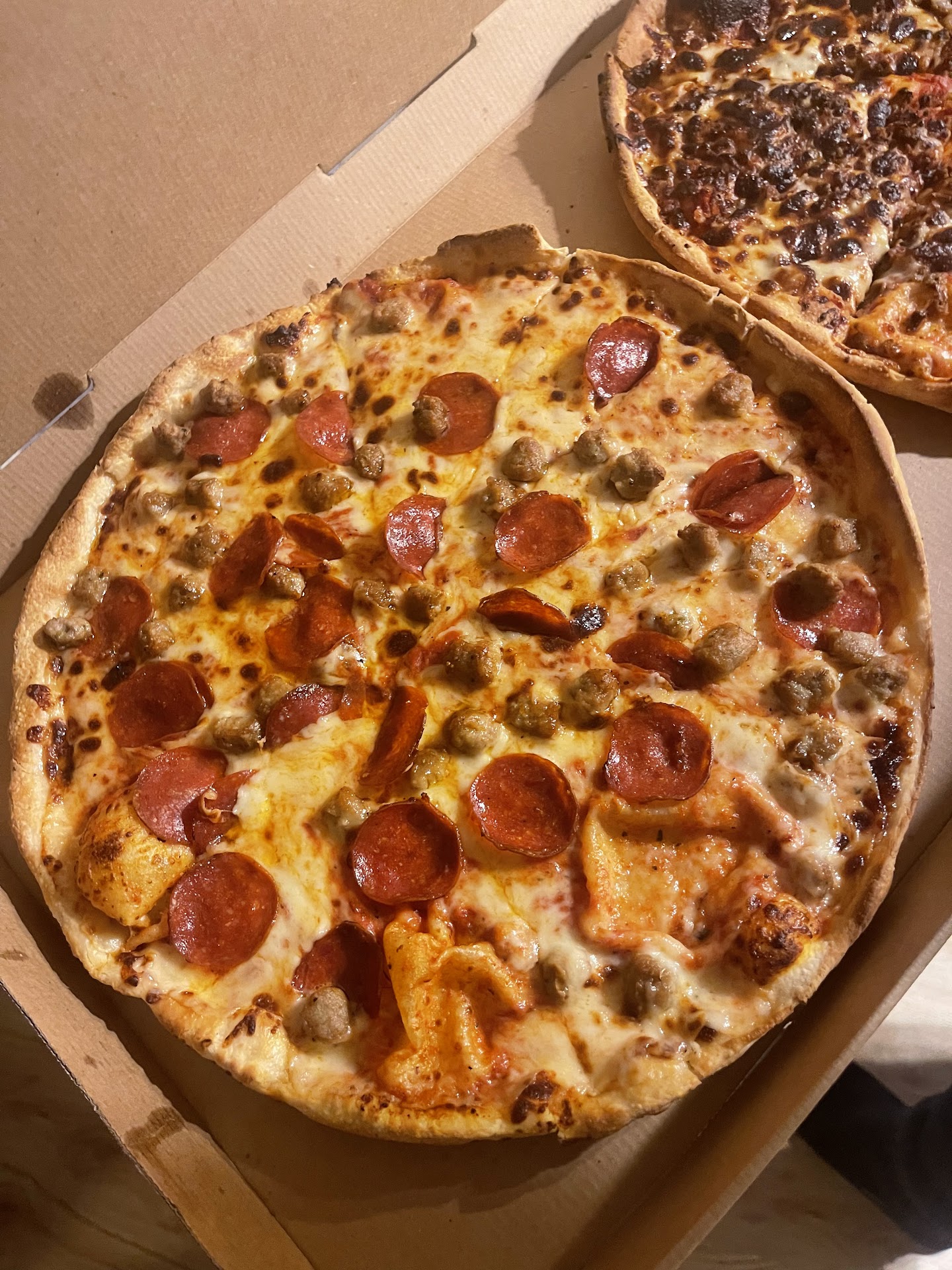 We ordered to dine in but everything came out like we were going to eat it to go - pizza was boxed, salad was boxed, etc. I think they could probably cut costs and save some table space if they brought the pizza out on the pans they probably cook them on like other places.