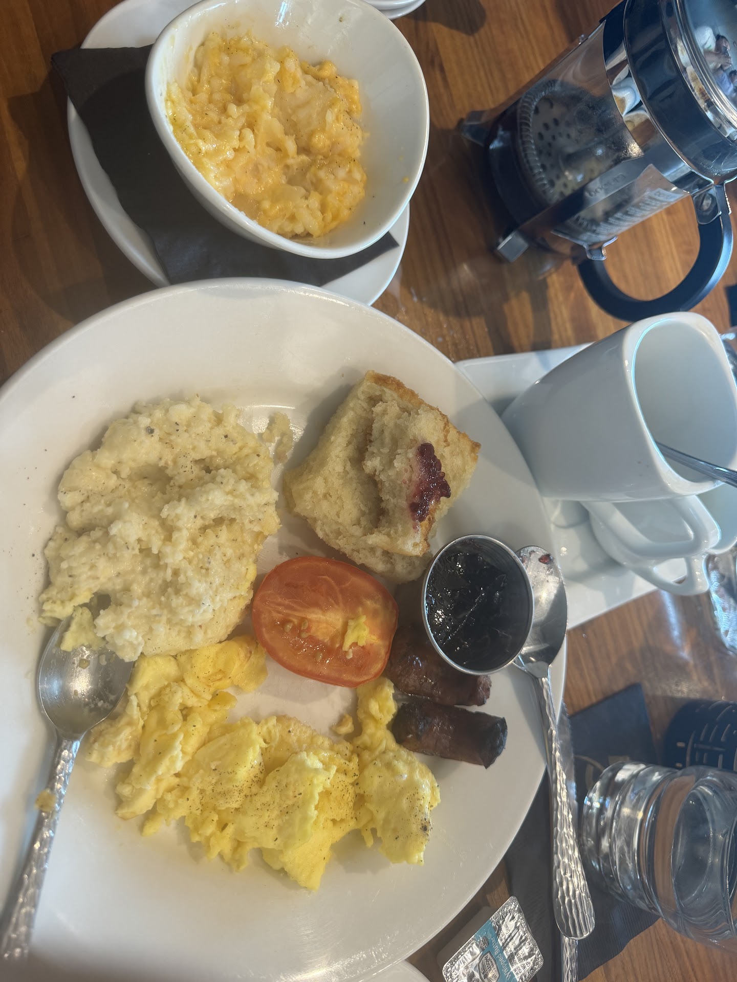 Read moreThis place was chosen for a final get together after my bestfriend’s wedding before everyone got on the road to go back home. We came for brunch on Sunday around 10:40. We had a party of about 20 that was split between 5 tables & no one gave the servers any problems. Everyone was honestly just having a good time enjoying each other’s company before it was time to depart. We had others that trickled in just to say a last goodbye & congrats to the newly weds but did not sit to eat or anything. For starters, the name of the restaurant is Rhythm on Monroe but yet no music was playing & it didn’t have to be anything crazy but some light music would have been nice. Technical difficulties maybe? Parking threw us off bc this was our first time dining & there’s no immediate parking for the restaurant. There is a parking lot up the street & some construction going on in the area. Also, just a heads up it is a short walk to the restaurant for anyone w/ mobility limitations. There were barely any other patrons in the restaurant during our time there so I was disappointed about the service being so slow. Not to mention, the servers really didn’t come to clear all the dishes as they should have & left us with some of the menus (not too much of a problem as I just set them on the bench seat). The food was okay. I got the platters & I was so disappointed w the portion size & taste of the conecuh sausage I received. Very small portion & didn’t taste like the real conecuh. My friend’s cinnamon roll wasn’t soft but more firm in texture. Other friends had shrimp & grits but they barely gave her any grits. No one was extremely pleased w the food & it was lacking in flavor overall. I don’t know, maybe everything was due to the cooks in charge that morning. I always say try things for yourself because my tastes are different from yours, but this isn’t somewhere I’d personally wait...