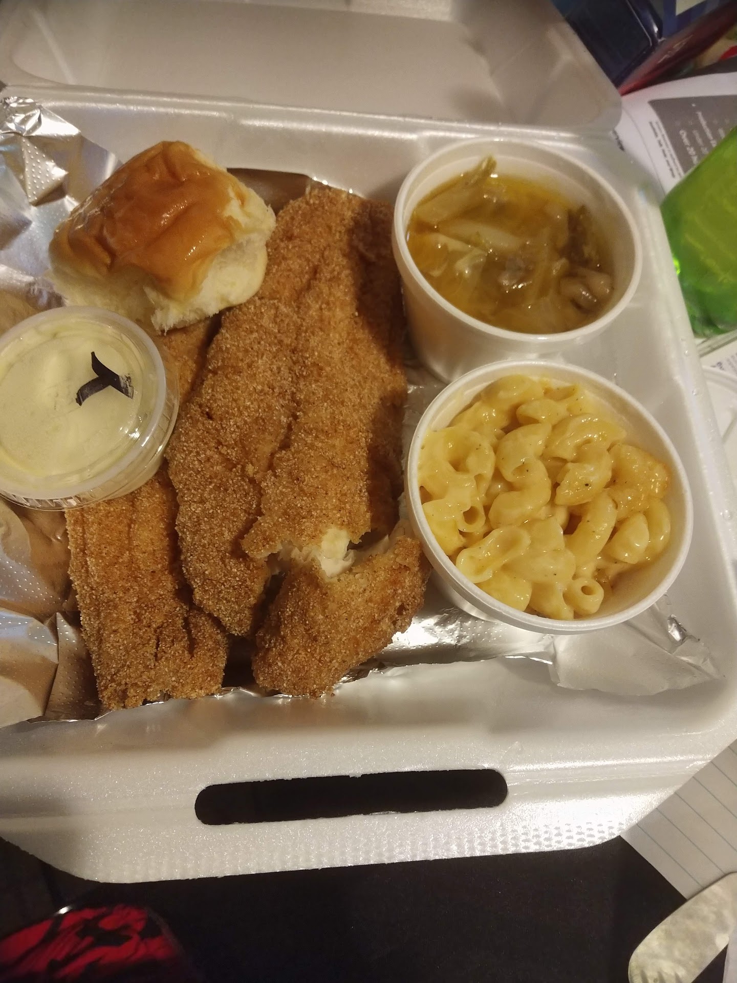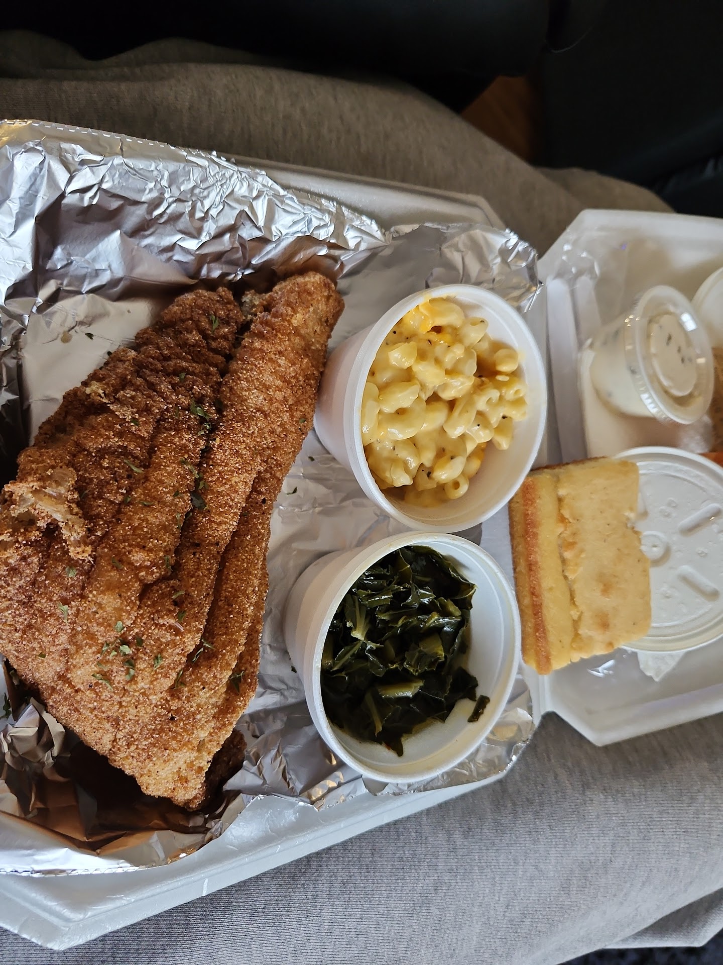Read moreGot this delivered by GrubHub. The order was perfect. The fried chicken was nice and crispy. I got the wing and breast. The breast was a bit tough but still had moisture in it. It is hard to keep it fresh when the delivery service has 3 other stops before you. Because it was delivery I cannot comment on atmosphere. The collards were perfectly done and not shredded. The mac & cheese was not as cheesy as I like but was still really good. I would order it again! The hot-water corn bread was a new experience (hey I am a Yankee transplant) and was delicious! I will definitely be ordering from them again, and one day actually go...