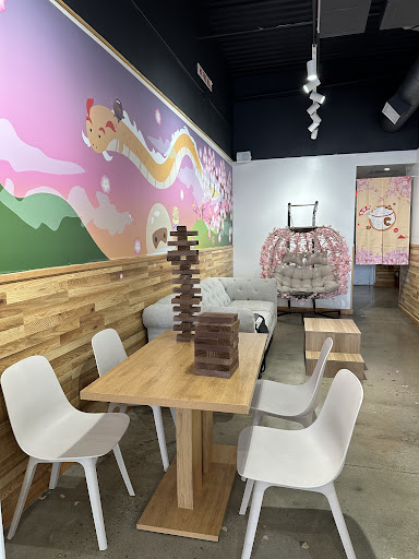 What a cute boba shop! Fun atmosphere and the boba is great. My kids loved picking the flavors for the milk tea and the pearls. We got mango coconut with coconut jellies, honeydew with honey bursting pearls, and brown sugar coconut with brown sugar jellies. Husband and I loved that we could choose the sugar level; 50% was mildly sweet and perfect for us. The reusable cups are really cute too. All the flavors were tasty but the brown sugar coconut was by far...