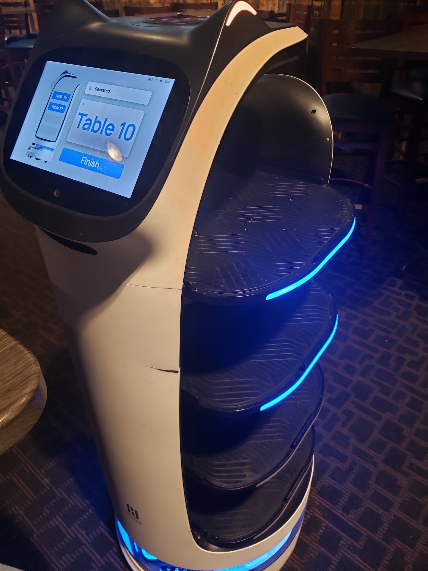 Really nice spot for both adults & kids. I was visiting a friend in AL and we took our boys for bowling and the arcade. There's an ax throwing section (for adults), pool tables, restaurant & bar area, & sports side so you can watch TV, etc. If you order a pitcher of drinks then you have to p/u at the snack bar by bowling lanes & take back to your seat. The manager, Psalm offered to carry it for us to the table & handed us a stack of plastic cups for 4 people & napkins. I gave most cups back as I thought that was wasteful since we wouldn't need so many. Maybe b/c we had 2 pitchers he thought it was a group but I'd still ask how many. The food was really good! We ordered chicken tenders & fries & boneless chicken wings. I ordered a burger & onion rings (see pic). This burger pic was the original witht he hard bun, but th food really is good and looks a lot better than this! My top bun was hard as a rock. I picked it up & tried to bite & my teeth literally didn't go through it. The manager, Psalm, was notified. He apologized, took my plate & another order was brought out. I'm still trying to figure out how the bun got so hard & how the person who made it didn't feel that when putting it together. 🤷🏽♀️ So, they have these 🤖 that bring your order to you (see pic). You place your order using a touch screen & note the table # you're sitting at. The robot brings your food directly to your table. It even senses if something/someone is in the way & will go around it. Once it arrives, you can press the 'finish' button on it, screen says delivered and it goes back to the kitchen area. Really neat concept & since the kitchen is in another area away from the restaurant/ bar it cuts down on workers constantly having to walk back & forth a distance. I'm on the fence as to whether I like the concept enough since the food is not covered as the robot is moving around people. If they add sliding doors or covers on certain parts then it would be perfect. When we got here (7pm ish) there was an hour wait for a lane. It worked out well, since our lane was ready by the time we finished eating. Bowling was fun! Each person can choose if they want bumpers or no bumpers. Of course I lost by a few points, but I was the only one who chose not to use bumpers! 😏 After bowling, we hit the arcade! They had more games than I normally see & games fun for adults too. I normally try to avoid tge arcade b/c they're expensive, games barely give you tickets, & prizes are trash. Not this place, actually have some nice things & everyone is sure to walk away with something. In total we spent about 3-3.5 hours here! My son enjoyed it & I'd go back too. I'd give it a 4* but since my food order was corrected, workers were friendly, & we had a good time, they...
