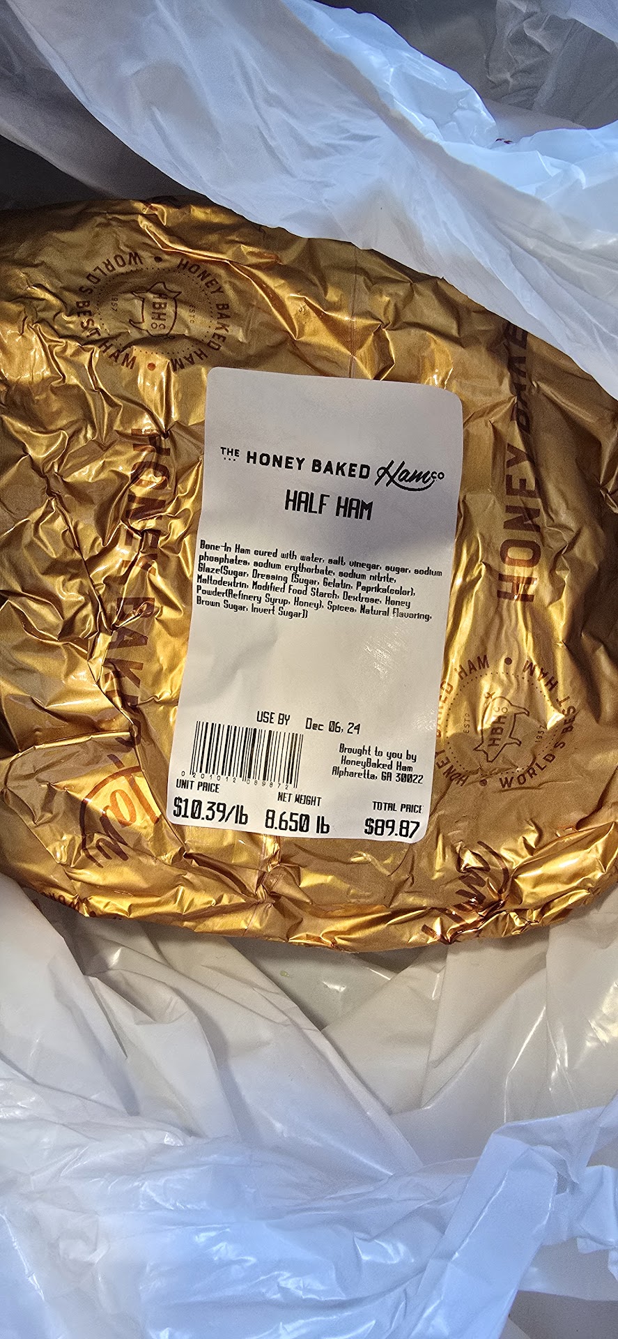 I purchased my 1st honey baked, bone in 12 lbs ham this week after hearing how great they were! When I got to the store it was obviously shift change, as the back of house employees were hanging around the behind the counter out front. A young man volunteered to help me since another young lady was busy with another customer. I explained I'd never purchased a ham from them, told him the size I wanted and asked a few questions. He brought me one ham from the back, the foil wasn't closed, it was loose on the front and he showed me the face of the ham. It looked OK and I asked him to cover it in foil so it would be sealed when refrigerated at home. He brought out 2 small pieces of Walmart regular foil and tried to help me make it work. That didn't bother me too much even though I was paying almost 130$ for a ham, he was trying to be helpful. The next day when I attempted to unwrap the ham, it had a 3x4 spot of their "signature crispy glaze" that was adhered to the wrap, that was it, not even on the ham. I called the store and was told that even though that's "not how it's supposed to be" it was still good. The back production manager told the employee I was on the phone with that. When I asked was the manager there the employee said yes that's who said it would be "ok." I asked if I could bring it back for an exchange since the ham wasn't as it should be, and was told no, they'd have to throw it away. So hard to believe this is how they normally do business. I won't be buying another ham from Honey baked hams again. At least not the Huntsville Alabama...