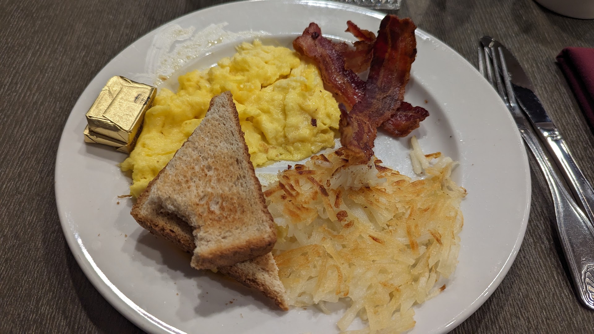 It’s a slow hotel— I think in part because there are so many fees that a cheaper hotel wouldn't have. Like free overnight parking ($12.00/night) free wifi ($7.99/day), free breakfast ($20.00). The breakfast is good, but does it have the options you’d expect from a...