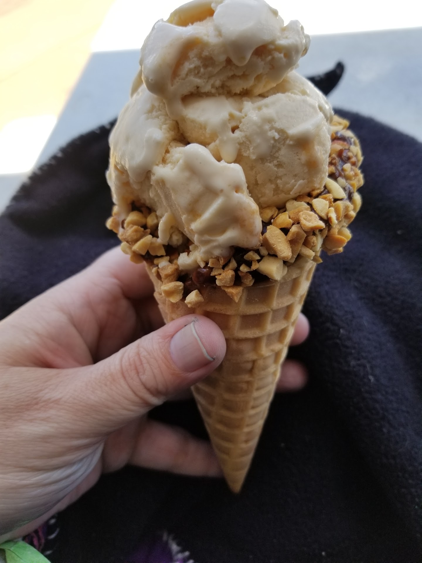 Ā Ā Ā Read moreThe white interior makes it obvious how clean the place is kept. The ice cream variety alone has an abundance of choices for young and old alike, including at least 3 vegan options (sorbet). I got the dulce de lece in a chocolate peanut waffle cone and was blown away by not only the freshness of the cone but the chocolate and peanuts as well. I was skeptical when my partner ordered a scoop of mint tracks topped with pistachio but luckily I had to "help out" and was amazed at not only the robust pistachio flavour but also how well pistachio and mint paired.