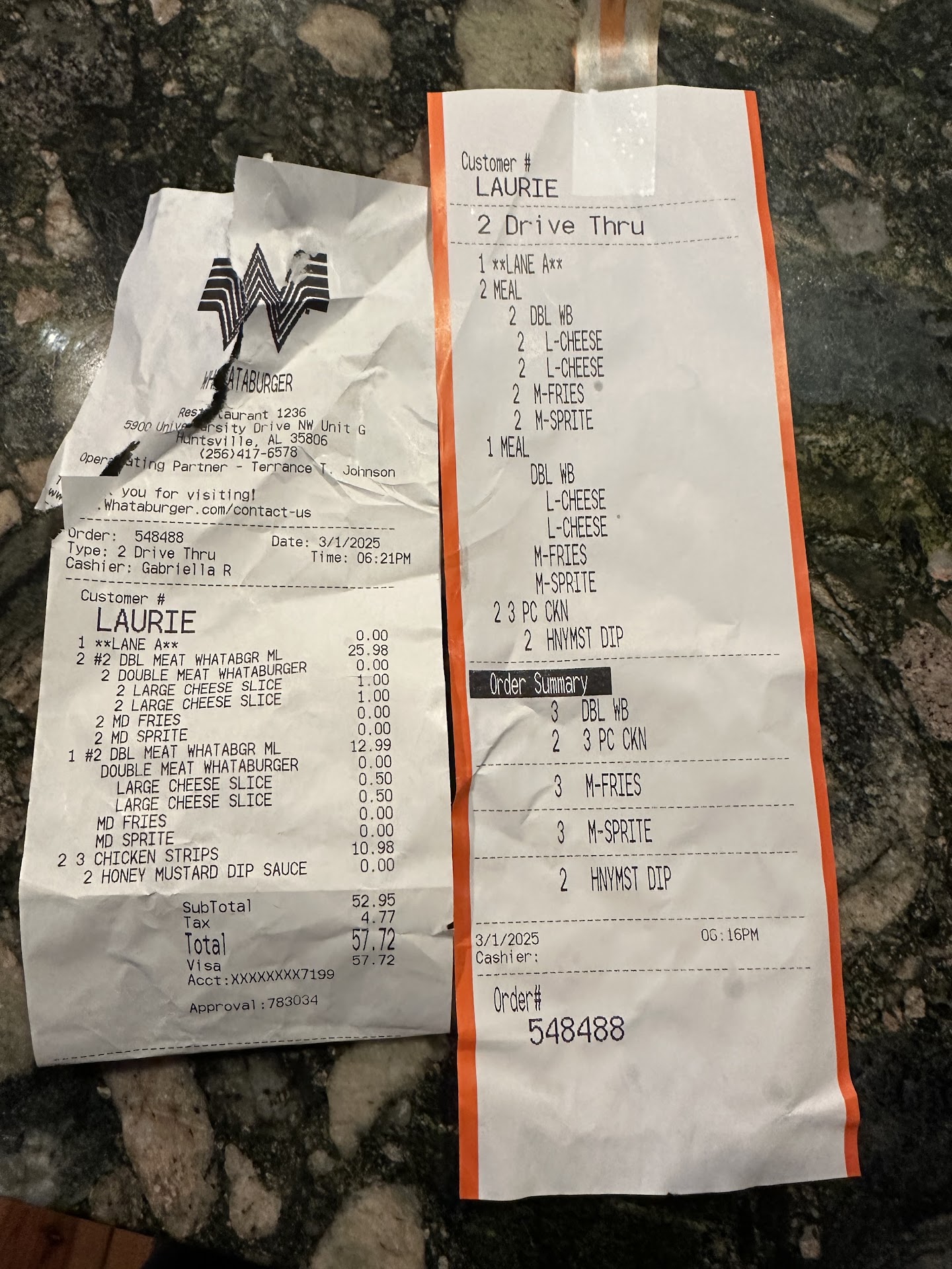 I really wished I would’ve taken photos of the inside and how trashy it was…but this whataburger is gonna be the reason that most people of Huntsville, that want the originally outstanding experience that you’re supposed to get when eating out at this restaurant no matter what time you go in, however, when I went to order from here at like 1AM it was probably the worst fast food experience I’ve ever had, no one seems to care about their job much less the customers they’re dealing with. I ordered my food after waiting for the employee that was standing right in front of me to get finished conversing with someone that wasn’t even ordering, not to mention I’m pretty sure they were drunk…there were other customers that had been waiting for over 30 mins, so thereafter I ordered I needed to use the restroom…and holy smokes, could the bathroom be anymore filthy, toilet paper everywhere, and other things but I’m not gonna get into too much graphic detail but you could imagine what else. Then I come back to the lobby and probably waited 35 mins before I asked someone about my order, they then tell me it’s been ready but sitting in the warmer all this time after they claimed to have called my name, which isn’t true at all, also on top of that, I had previously at the beginning of my wait when I ordered, I asked the lady a few minutes after my order was placed if it would be any trouble to swap my sweet tea out for a shake, she said she would, but after waiting all that time to find out my order had been ready but just sitting in the warmer, I then asked another employee if I could go ahead and receive my shake…she replied with a claim that I’m not allowed to switch up my drink for a shake after I placed the order (which I’ve done before) even after I insisted to pay the difference, and after getting an attitude with me all because I wanted the shake I was told previously I could order, she comes up with this excuse that they don’t have any, and all the sudden they aren’t making any more shakes… in conclusion, despite the service, the food was still delicious, however, I’ll never return here at least to this store to order food EVER again…this place is a disaster and the employees are a disgrace to the franchise and make it questionable whether you should spend your hard earned money at any of these stores in worry that you’ll be treated this way elsewhere… God bless you all and I hope you don’t get...