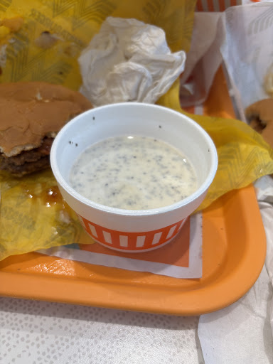 Read moreOrdered at the kiosk since nobody was actually behind a register when I walked in (normally I like using the kiosk anyways)and didn't encounter a problem until I needed a "tent" for my order. No big deal since there were none on the lone ordering machine so I asked the young lady for one (she was super nice but bewildered why I needed one in the first place 🤔) So got that and then my order was complete......or so I thought. Then I finished and my receipt printed but didn't print and so started the debacle. I asked for my drink since I ordered a meal and the search was on since I didn't have the receipt so what looked to be a supervisor tried looking up my order (mind you I already knew the order was in and all I wanted was the cup) and found it eventually for verification 👍 but still all I wanted was the cup so I could sit down and wait. Ended up patiently waiting as others ordered and then asked politely for the cup to which the young lady was prompt to give me. Sat and waited for my food and then realized the whole trip was a mistake....food was barely average temperature and so were the onion rings. To top it off I was asked if I wanted ketchup and I swiftly replied yes I would like some spicy ketchup but guess what.....they did not have any 🤦🏼♂️. In the 16+yrs that I have frequented a what a burger they have never been out (it's a staple) of spicy ketchup. I'm sorry if you feel some type of way about this location but I will literally never...