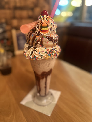 TLDR: The bar is pretty, and the employees are kind, The food is very expensive, and even for bar food, the Milkshake had a piece of raw bacon at the very bottom. Manger made a horrible excuse, began berating with questions, tried to blame my friend for stopping her from helping take care of the drink, and then left without an apology. Drink was taken care of but was treated like absolute trash