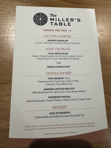 My family and I visited Millerâs Table at Cedar Point Resort during a trip from Texas, hoping for a relaxing meal after a day on the lake. The food was excellent, and the atmosphere had potential, but our experience was significantly marred by a group of 6-8 adults at the bar cursing loudly, using profanity, and taking the Lordâs name in vain. With only a few tables in the restaurant, their behavior was impossible to ignore and disrupted our meal for nearly half the time we were there.