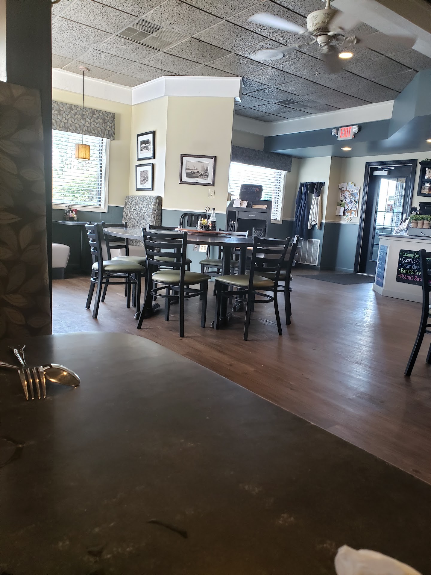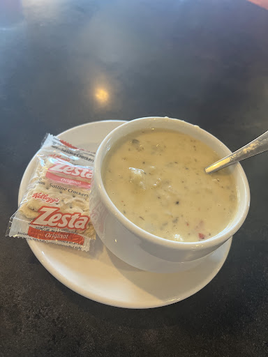 Stopped in on a reference from a local business man. Asked about the seafood bisque soup they brought a sample of both soups of the day. The seafood bisque was amazing(and iim not a seafood soup guy.) the other was a nice take on chicken and dumplings also worth a try. But my friend and i had the bisque. Then Ellen our nice waitress brought out fresh rolls. Hot crispy and soft in the middle with fresh soft butter. I had the chipotle burger. Fresh hand made Angus beef Patty, Monterey jack, jalapeƱos chipotle sauce, nice bun. Very good not to spicy. REALLY good fries. My friend had the lasagna it was about a pound, had a meat sauce and cheese everywhere, he ate half. As we are truckers I keep threating to eat the rest when he falls asleep. Looks like what my grandma and mom used to make. Then we had to have the home made pie I had the coconut cream, i f the fridge was bigger I would have gotten a whole one. I think I made love to it, or it made love to me, either way i was sticky and happy. My friend had cream cheese pecan. Looked good, but I was in love with my pie, so I didn't look twice. I would say this is the best home cooking type meal I've had in last six months on the road. My friend didn't say much that's saying alot. Atmosphere comfortable, waitress busy but good, drinks stayed full. Bathrooms small but clean. My conclusion if you haven't waited tables you don't know how hard it is to keep smiling at grumpy demanding people. If you come into a place happy and treat people good you will get treated fair. If that is not good learn how to cook. Thank you I hope I can come...