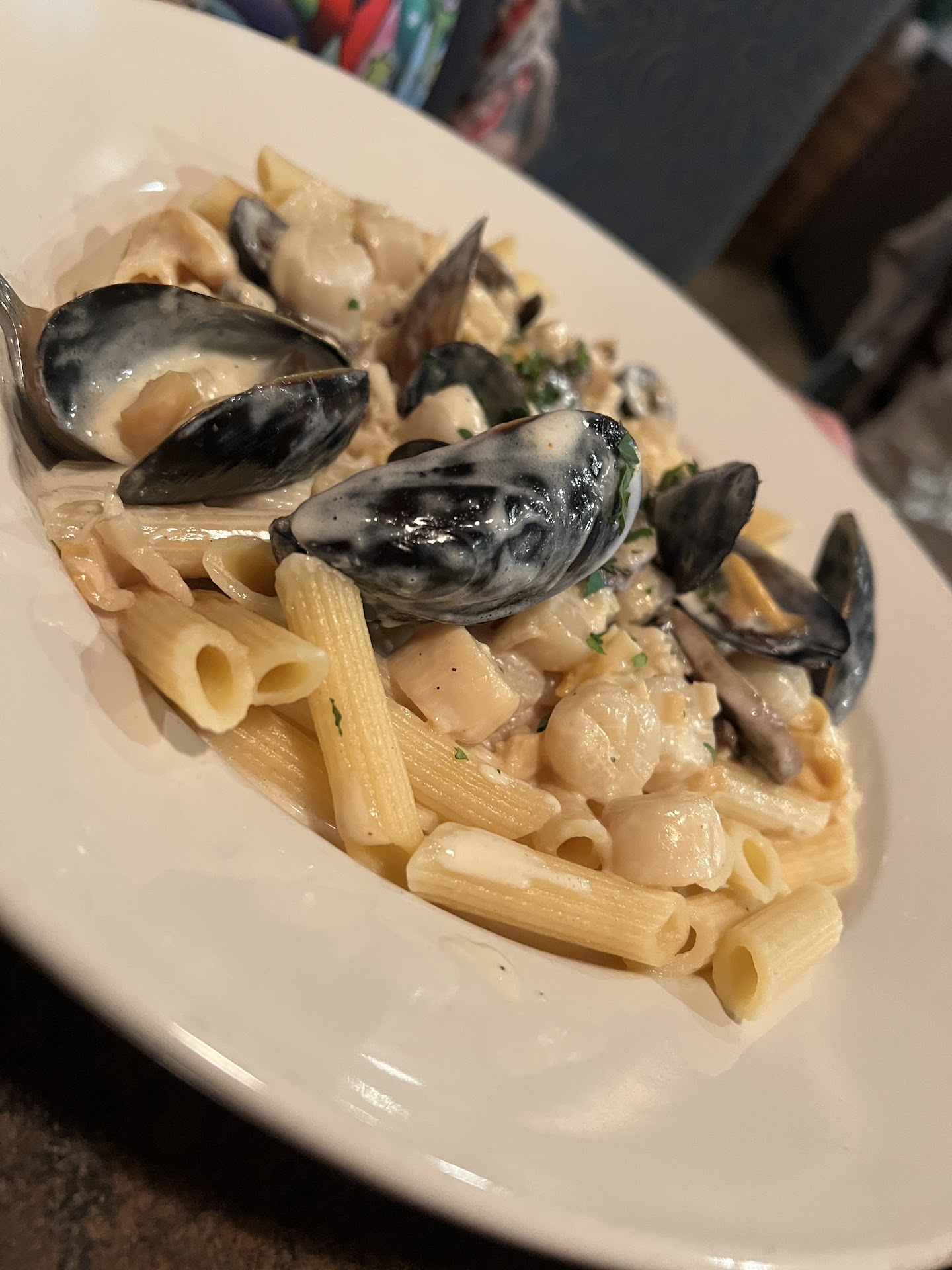 As for the meal, I was pleasantly surprised about the sheer variety of options I could safely eat. Obviously no bread, but the gluten free crackers were a nice touch, and I really appreciated that they carry them. We got the mussels and shrimp as appetizers, and both were amazing. The sauce the shrimp were served in was absolutely divine! I really liked having those crackers to scoop up the sauce, and I bet diners without dietary restrictions could make good use of some bread here.