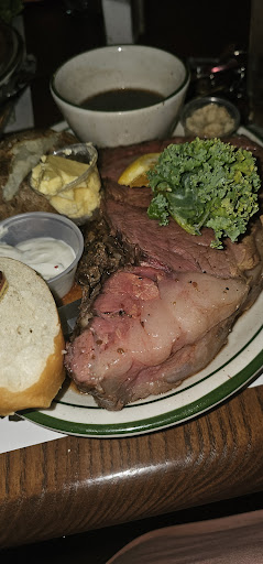 Read moreA mostly average meal. We were happily greeted by a tired but friendly bartender. Jessica took over and took our order. She seemed very busy but mostly attentive. The menu was simple which normally is a huge plus. There was a 8, 12, 16, 24, 32 oz sizes of prime rib along with a black and blue salad or 7 or 14oz steak tips. The steaks were served with wedge salad and baked potato. My lady ordered 14 oz steak tips cooked medium. I had the 24 oz prime medium rare. Both came out as ordered. We did wait for a refills on water several times. The good and bad. The service was ok but not overly friendly. The steaks were cooked as requested. The horseradish was good but not great. The baked tater lacked anything special (not even a salted skin). The inside of the restaurant was dimly lit with a couple of drunks swearing at the bar. The most memorable item was the cheesecake. Please if you eat here order the cheesecake. Everything else was just average and a good but definitely not best prime rib. It needed to be dunked in au jus for the best flavor. The steak tips were definitely chewy for a steakhouse. PS. Order the...