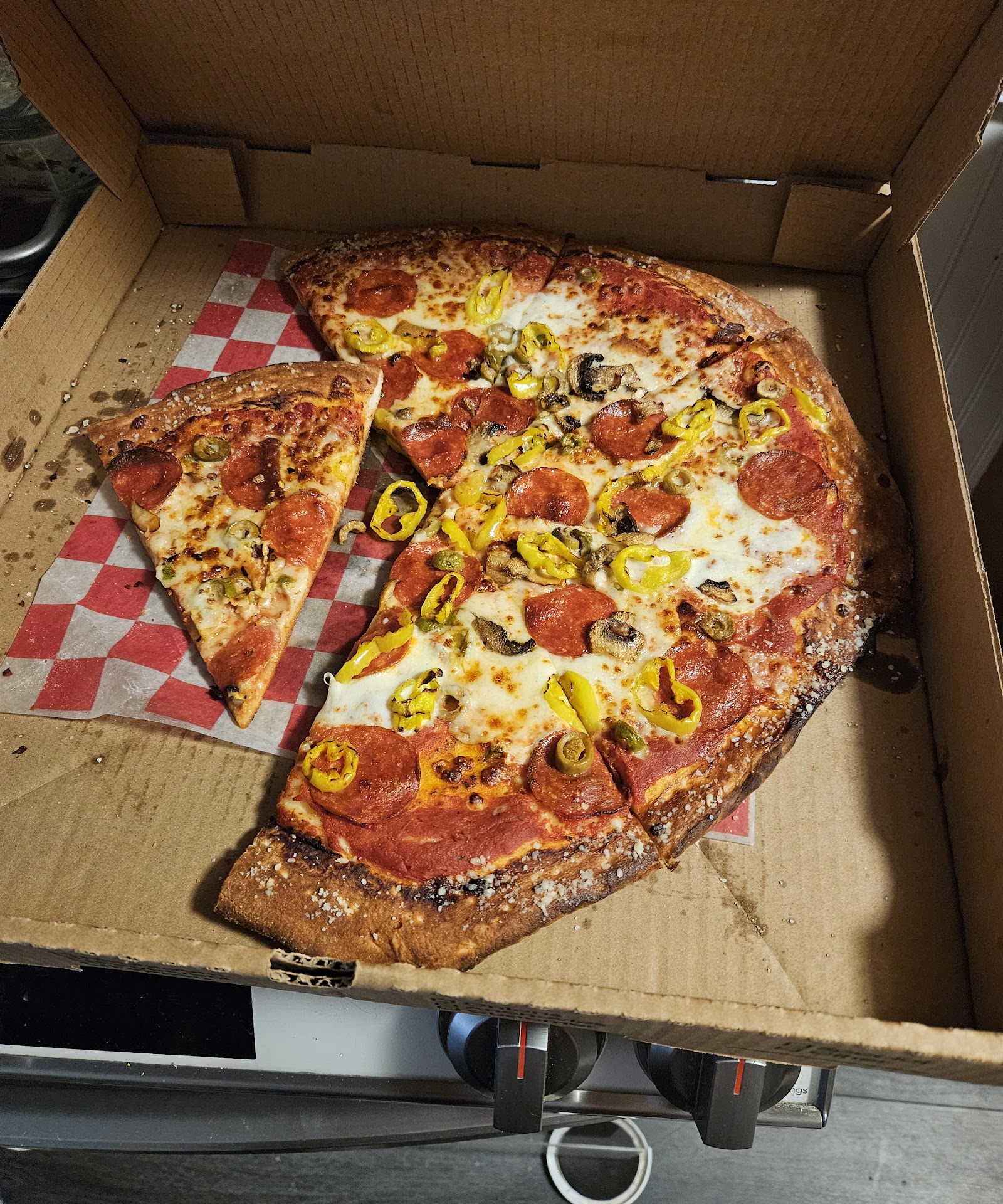 First off the guy was by himself working on multiple orders and he was so nice and professional despite being very busy- he did his best and worked as fast as he could to deliver quality food. Secondly we ordered 3 pizzas(big family) one being chicken bacon ranch, one being the hot honey pepperoni and my personal favorite and choice the dill pickle pizza- let me tell you they were all delicious. They didnāt offer delivery that day but that was okay it was a short drive to the next town over for some amazing pizza! If youāre looking for something different (they have so many options) definitely give this place a try and remember to stay kind if the wait times are a little longer than what you want, because it was being ran by a 1 man crew and he was working hard to make every...
