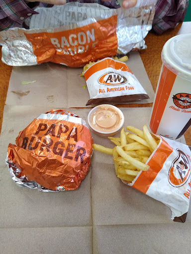 The food here is pretty decent, the burgers aren't bad at all, but the stars of the show are the cheese curds and the root beer!! They also have corn dog nuggets which are a personal favorite for something to snack on while driving if I don't have time to sit and eat. There's also a Blimpies Subs that share the same area as the A&W which makes this a pretty decent stop if you're traveling with family that can't decide on what everyone...