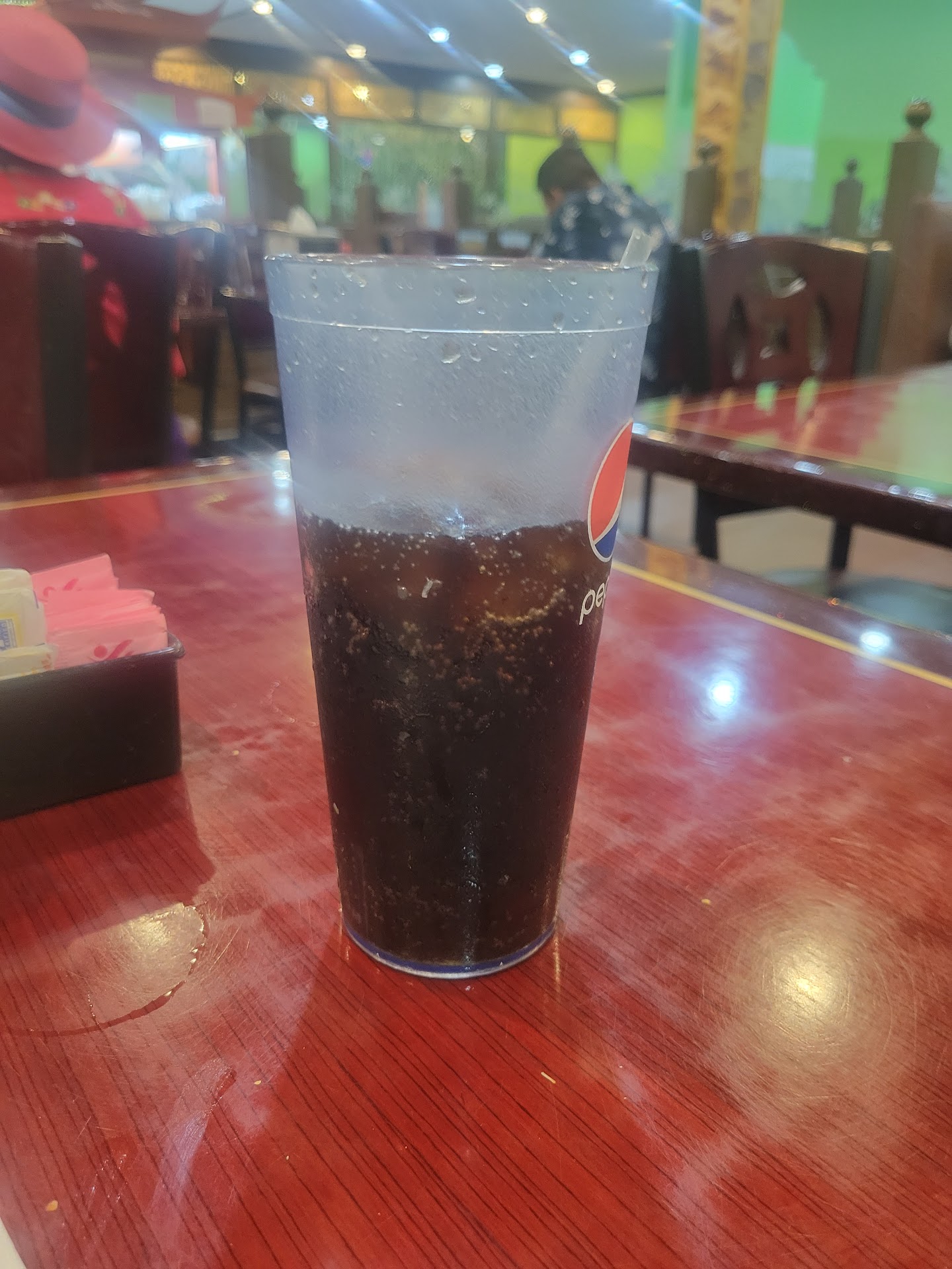Right from the start, there were cleanliness issues. One of my friends found a piece of orange paper—similar to a torn salt packet—at the bottom of their water cup. I also ordered water, and mine had small black crumbs floating in it. This made us immediately question the hygiene and cleanliness of the drinkware and overall environment.