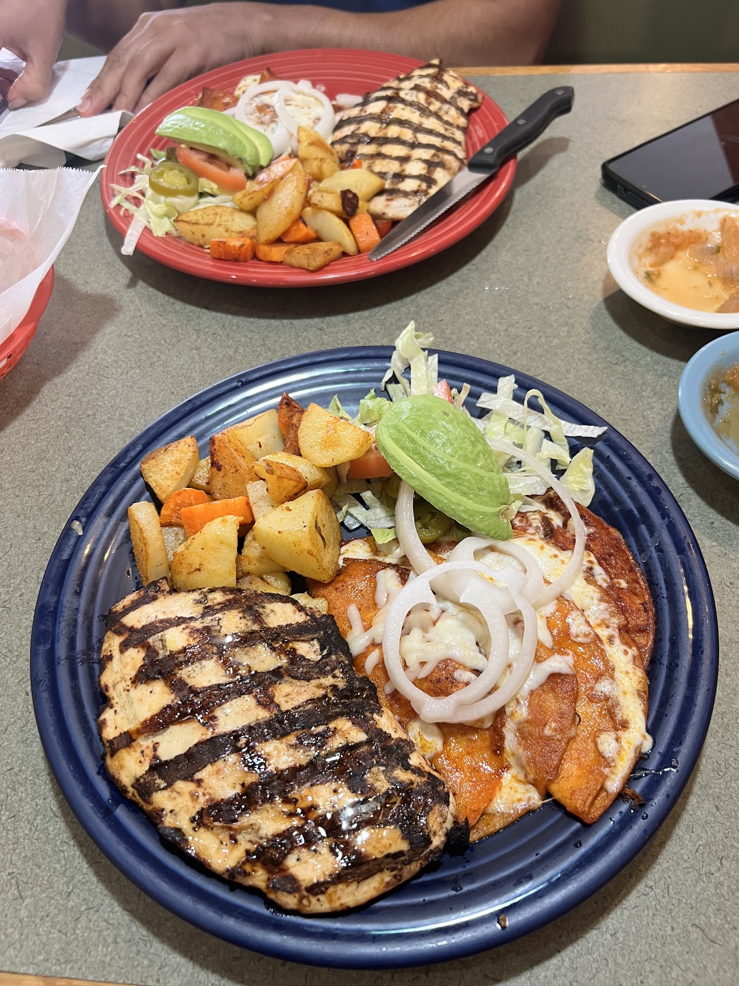 I will start by saying that the food was good. They had good portions for the price and tasty. I really liked the salsa, normally I don’t care for warm salsa but this was good. That’s the reason for the three ⭐️’s. However, I wasn’t impressed with the service for a few reasons. I explained to the server this was our first time to visit the restaurant. I asked her recommendations. She gave me ONE of her favorites and there are several to choose from. She was pleasant and smiled but really did not engage, didn’t check on us periodically like she should have. I had asked her if I could have some chips and salsa to go and when I got my ticket she charged me $2.99. I worked at a restaurant for 15 years and never charged for chips and salsa to go nor have I ever been charged anywhere else. I understand this may be there policy and it’s ok but I felt she should have said so when I ordered them. If you are a paying patron and eating inside, the ships and salsa are free why wouldn’t they be free when you leave as well? She never asked if we would like desert, she never pre bussed our table. If my decision was based on service alone I wouldn’t recommend the place but the food was really good and I always give a place a...
