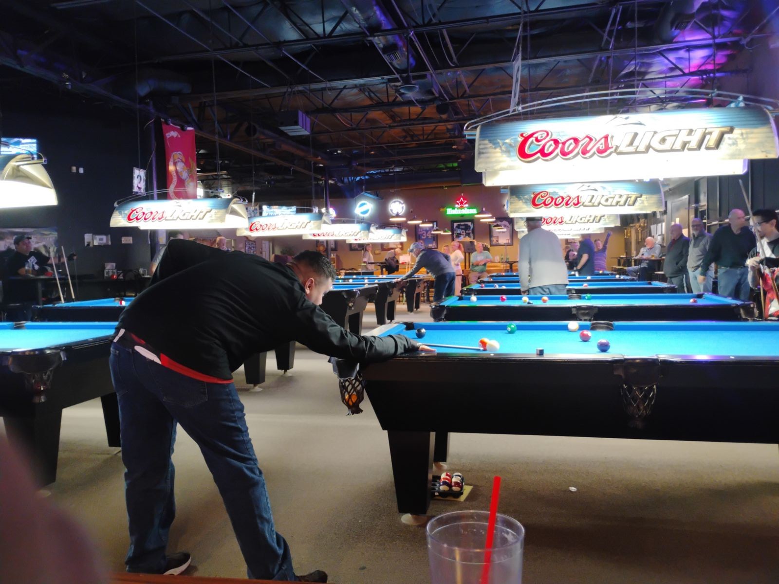 Twice, a man in an Astros jersey walked in front of me while I was trying to enjoy my time playing pool. I waited for him to pass, but he continued to obstruct my view. I assumed he was friends with the couple next to me, which explained his repeated interruptions. Things escalated when I was holding the pool cue, and he loudly exclaimed, āYou saw me walking!ā