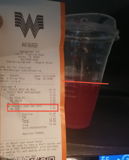 Read moreI'm very hurt this morning. Due to the outbreak at McDonald's I decided to give Whataburger a try for breakfast. I ordered pancakes, eggs, bacon, coffee and a chocolate chip cookie. When the lady at the window repeated my order I heard her say hash browns. They charged my credit card at the window, then asked to charge my card again for the chocolate chip cookie. Once I received my order I didn't get my eggs, hash brown or chocolate chip cookie. When people are preparing my food I treat them with the utmost respect always. I told the lady at the window that I appreciate their hard work but my order was incorrect. She immediately became offensive. I gave her my receipt. She said that I was lying about my order. And asked me for my credit card to charge me for the eggs, has browns, and cookies. I make $100,000 and it's not the point of the price of the food. It's the fact that this lady said that I was lying about my order. She definitely has a problem with authority and shouldn't be in the position that she is in. She said that she put my cookie in the bag but didn't have time to review the footage from the drive through camera. I never asked her to review anything. But if she does review the footage it would be clearly apparent that she didn't give me my cookie, eggs, or hash browns. I feel like she became offensive because I'm black. I look young but I'm 51 years old, mature, in manage at my job and know how to treat people. I can't believe I'm starting off my day being falsely accused and additionally charged on my credit card. This place is terrible. Wouldn't recommend...