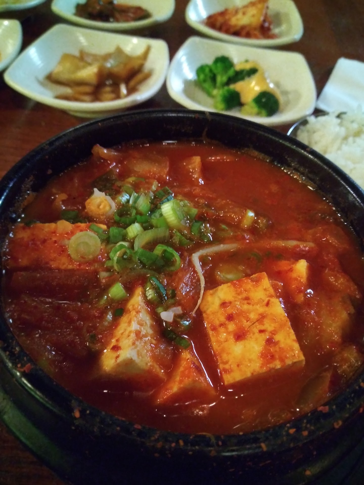 Side dishes make or break an experience because of the value you get. Bean sprout, fish cake, kimchee, radish kimchee. Broccoli with sauce. All were excellent.