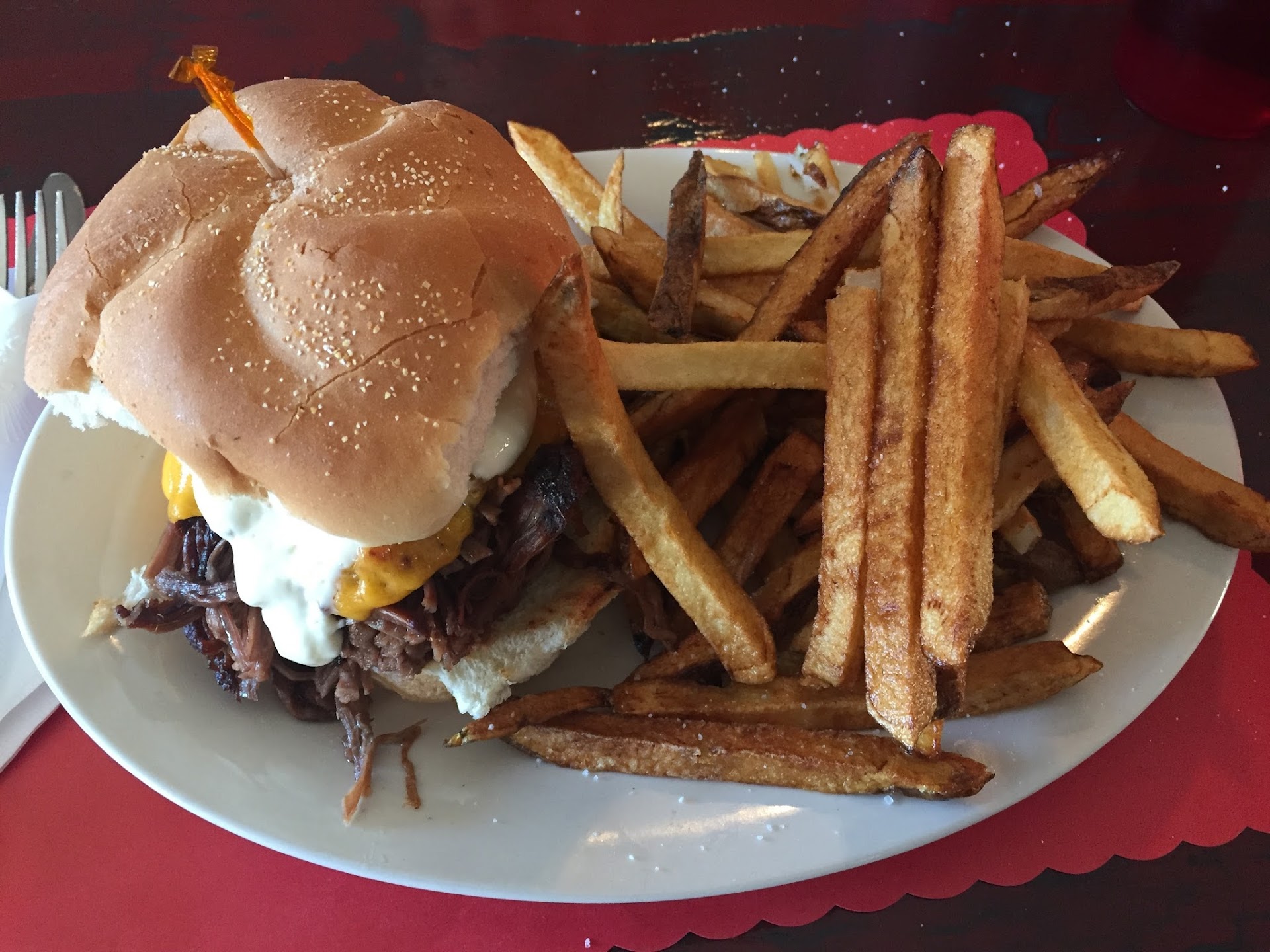Read moreWe stopped Saturday on our way to see the Elk. I had called the day before to check on the outdoor seating because we ride with our dog and was told we could order to go and sit out back because they didn't have enough staff for outdoor service, no problem for us. We got there ordered and sat outside, next thing you know the woman that took our order, wish I had her name to mention, came out and wiped the table, brought condiments and brought all our food. Totally unexpected but appreciated. Then the food, wow was it good and a lot of it. Definitely will be stopping here again. I had the brisket sandwich and my wife the chicken...