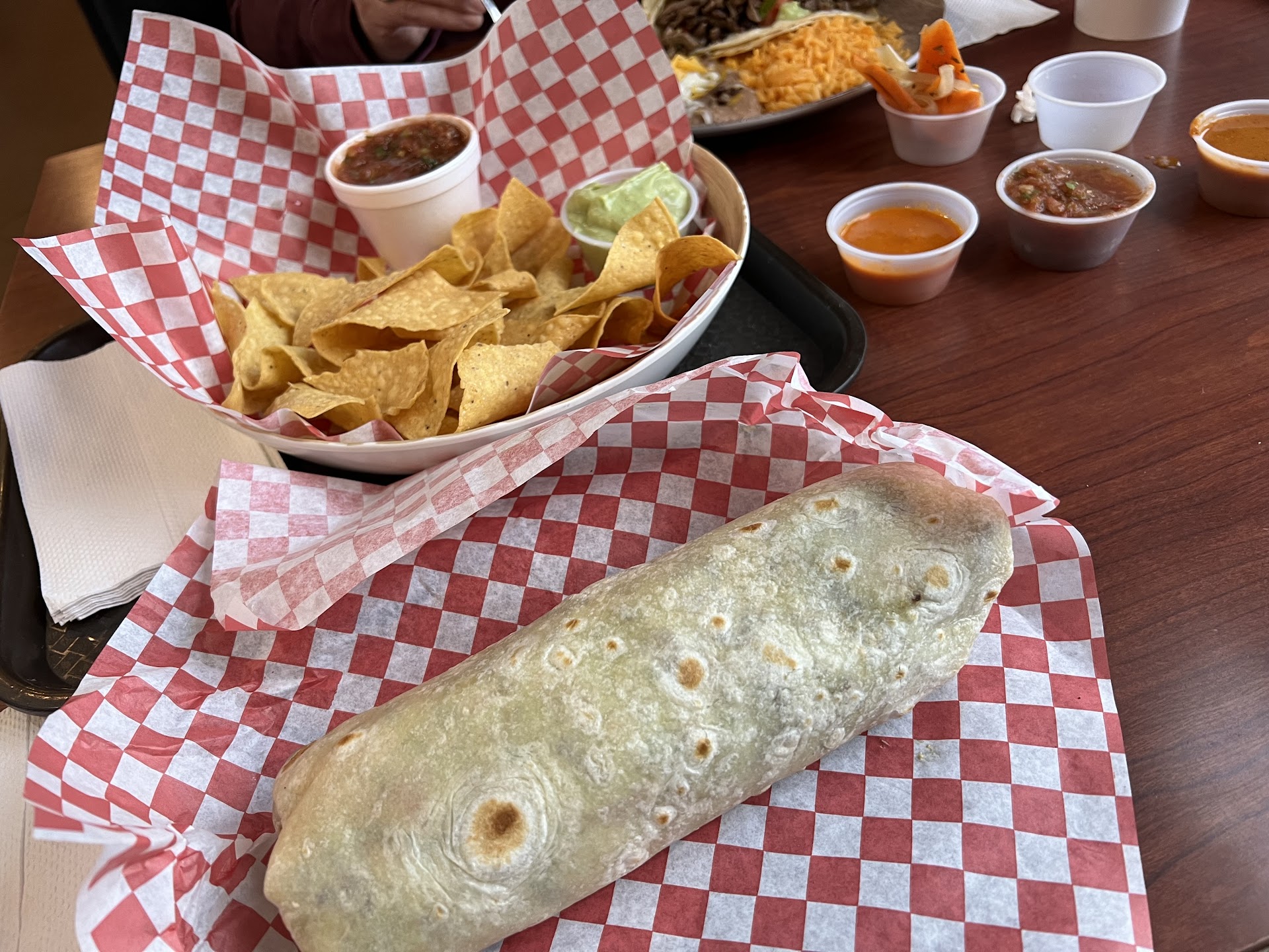 I'm giving this 2 stars because the service was great, and portions were awesome. I've never had such bland, flavorless Mexican food in my life. First time i got the carne asada, simple staple, hard to mess up, great way to gauge Mexican restaurants. Cold, stale, flavorless. I decided then to never go back. Today i decided to try a breakfast burrito, thinking maybe that will be the saving grace. It's actually impressive that you baggage to make BACON have no flavor. Inundated with potatoes with no flavor, barely any bacon, and a tiny sprinkle of cheese.