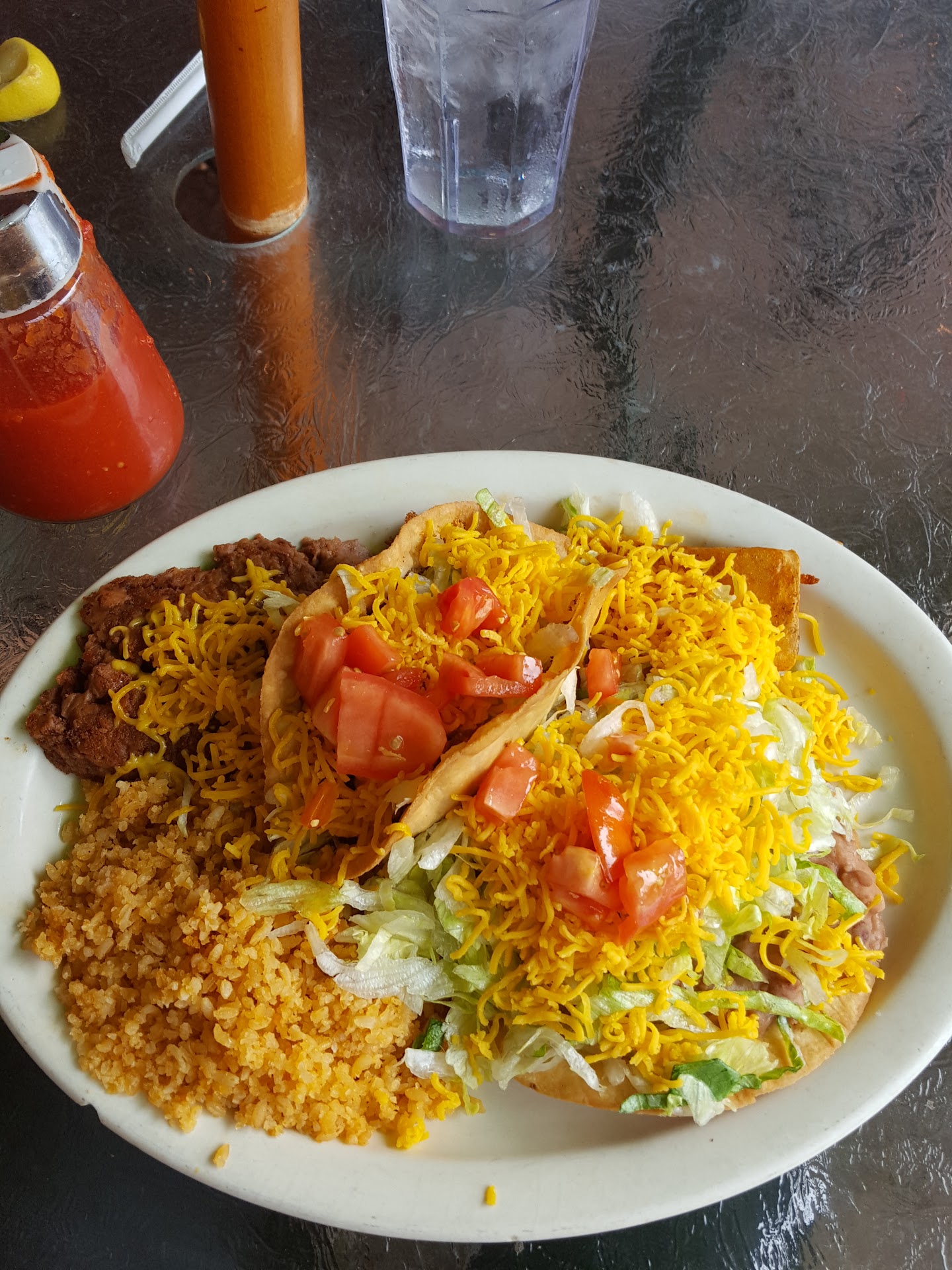 Read moreLets start with... Its not bad. When I think of authentic Mexican food I'd prefer an authentic Mexican atmosphere. Their main entry is bright and glorious and first impressions make you excited to be there!! Then you are guided into a brown, musty room that resembles 60's diner. I get that its an old building and that definitely has some appeal to some people, but when strung up Christmas lights and the tomatoes on your plate are the only thing that has color in your dining area. This fact and that the actual food itself has little flavor... With that in mind their hot sauce is very tasty, almost drinkable, I happily poured the entire cup all over everything I had and enjoyed my food. I'd really like to say that the Food itself was good, however really its all about the sauce.
