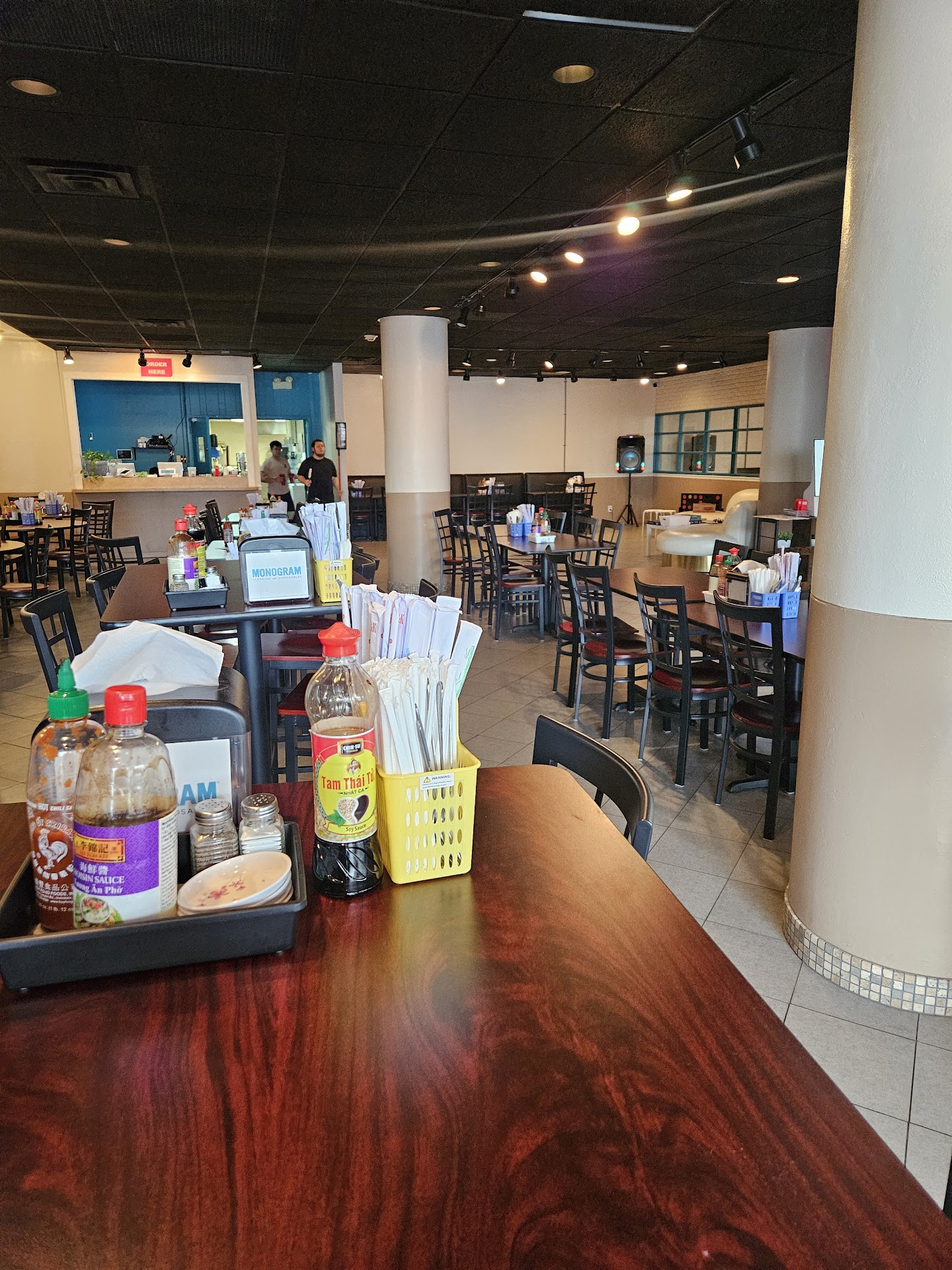 Read moreMy kid and I were really looking forward to trying out the vegetarian options at this restaurant. The restaurant is located on the main level of Wesley Towers. It was empty when we arrived. We both liked the layout, low lighting, window and other seating options. Staff was friendly and attentive. It was quiet until they turned on 80s music that seemed to be because of our arrival. We could have done without that. It was too loud and did not contribute to the ambience. The food looked so good. We were excited, but quickly disappointed. We both ordered different boba teas, mango and chai, that were okay- good. They let you choose sweetness level and you can opt for non-dairy, but they don't disclose what that non-dairy option is. It was my first experience with boba. The spring rolls were completely flavorless and accompanied with a very unappetizing-looking thick brown sauce that neither of us liked. We doused them in chili, soy and hoison sauces that were available at table. My kid ordered a garlic butter dish with noodles and I ordered a veggie pho with a broth that was very strange, unappetizing and ruined the entire dish. Even the smell was very unappetizing. The tofu in both of our dishes was also very bland and disappointing, even though it was piled high. We are both normally fans of tofu. We paid about $70, in total. We each only took a few bites of our respective dishes because they both tasted so bad. We tried each others' dishes and were just as disappointed. We were both very disappointed and will likely not return. I see that others have left quite good reviews for the meat/seafood-based dishes. I would not recommend this restaurant for any of it's vegetarian or vegan options, however. What we tried out was very disappointing, tasted very bland or downright bad, and after spending...