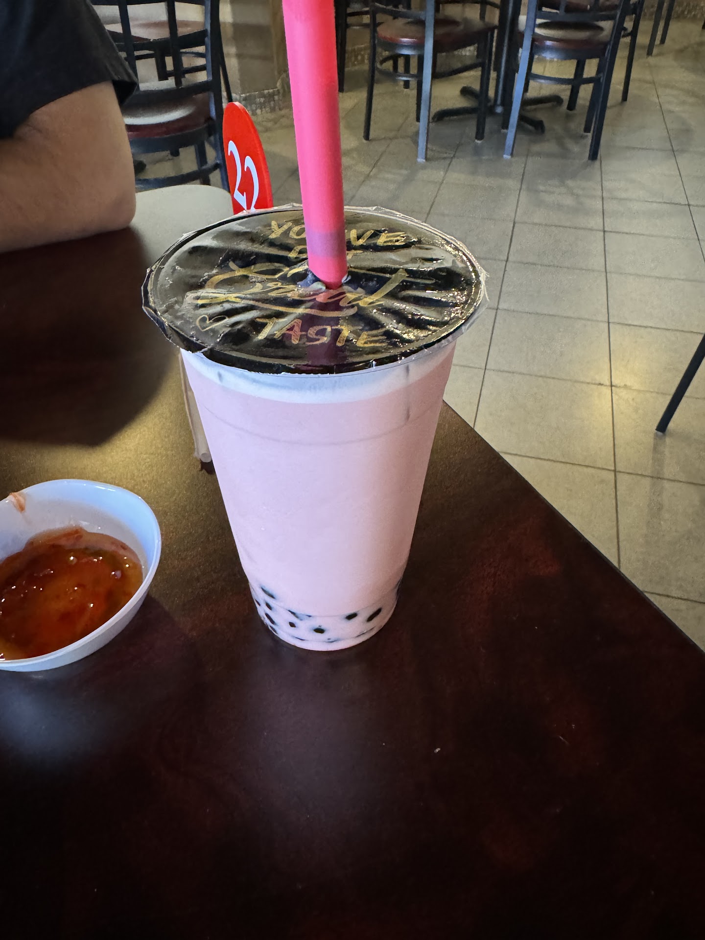 Boba straw was too short, and can fall into the drink completely at the right angle. It’s a silly detail, but it is important. It feels a bit careless and inconsiderate.
