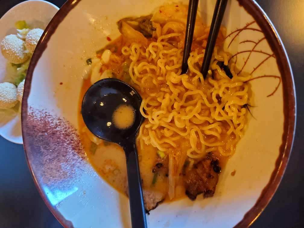 My husband got the Spicy Chicken Ramen and I got the Spicy Tonkotsu Ramen (with Kimchi added). My husband liked the ramen and had no complaints about it outside the realm of it was a different experience for him. Me, as someone who loves Ramen, had a lot to say. It was absolutely delicious. The broth was perfect, the pork belly was tender, the kimchi was very tasty, and all the other veggies tasted great. I've never had bamboo shoot so I can't comment on the taste of that, but for a first time I didn't hate it. My only issue is I believe my ramen was supposed to have bean sprouts but there was none on my ramen. The bowls you get are HUGE! So well worth the $12 a bowl for what we got. Also. On the spicy ramen they ask you about heat intensity. Our awesome waiter offered to bring a bit of extra chili oil for me so I could make mine spicier if I wanted it spicier. It ended up being perfect though. So if you are unsure about the heat I would say get Mild and then ask for a side of chili oil to adjust for yourself.