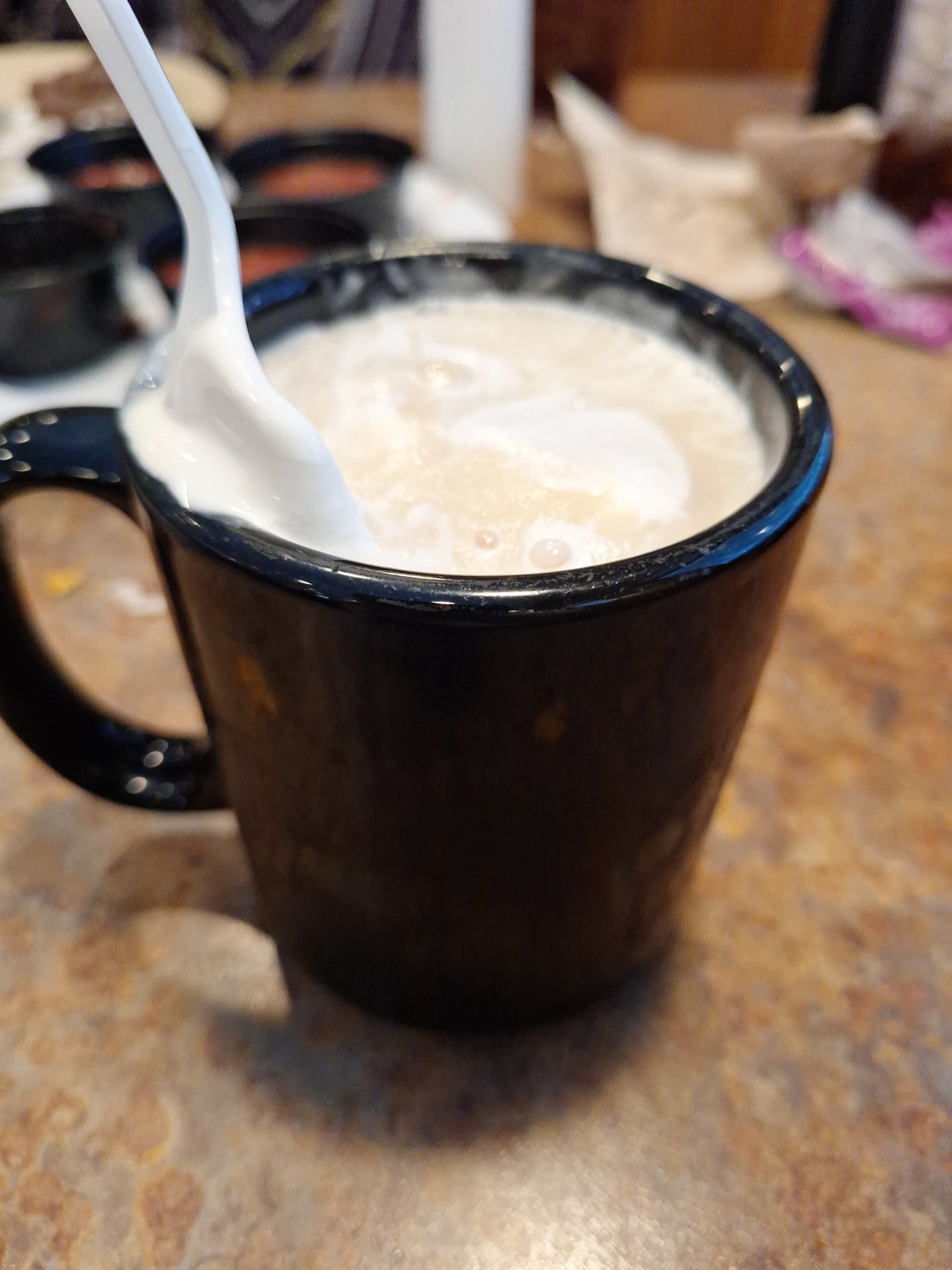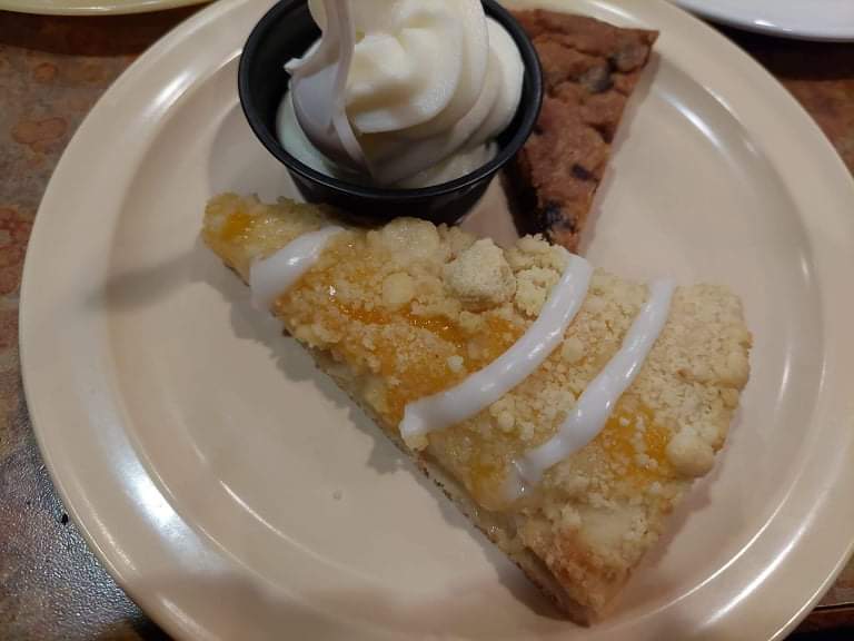 I really like what all we get for the price, a pizza, fried chicken, salad and dessert buffet with the drink included. However, I was not impressed with the pizza this time. I usually really like it, but I don't know if they changed the recipe or if I just wasn't feeling it tonight. One thing they did change that I'm grumpy about is the sauce options for the chicken. In the past they have had big bottles with sauces for the chicken, as well as ketchup bottles on the buffet, but now all they have are those dumb packets that are hard to open, plus you have to use 3 to get enough sauce. Disappointed about that. I also missed the special salad for the salad bar. Previously they always had a seasonal salad, like berry Walnut or mandaran orange, but not tonight. Also, they had a bunch of signs up for a new kind of pizza with french fries, but they didn't have it out. If you have something advertised, you'd think that they would keep it stocked pretty well on the buffet. I know I could have requested it, but I had already requested something else and didn't want to be needy. I do love the dessert pizza, though, especially apple and peach. However, all they had was butterscotch (not great) and their classic cactus bread. The thing I requested was the dessert pizza. It was so worth it. I ate ice cream while I waited and it...