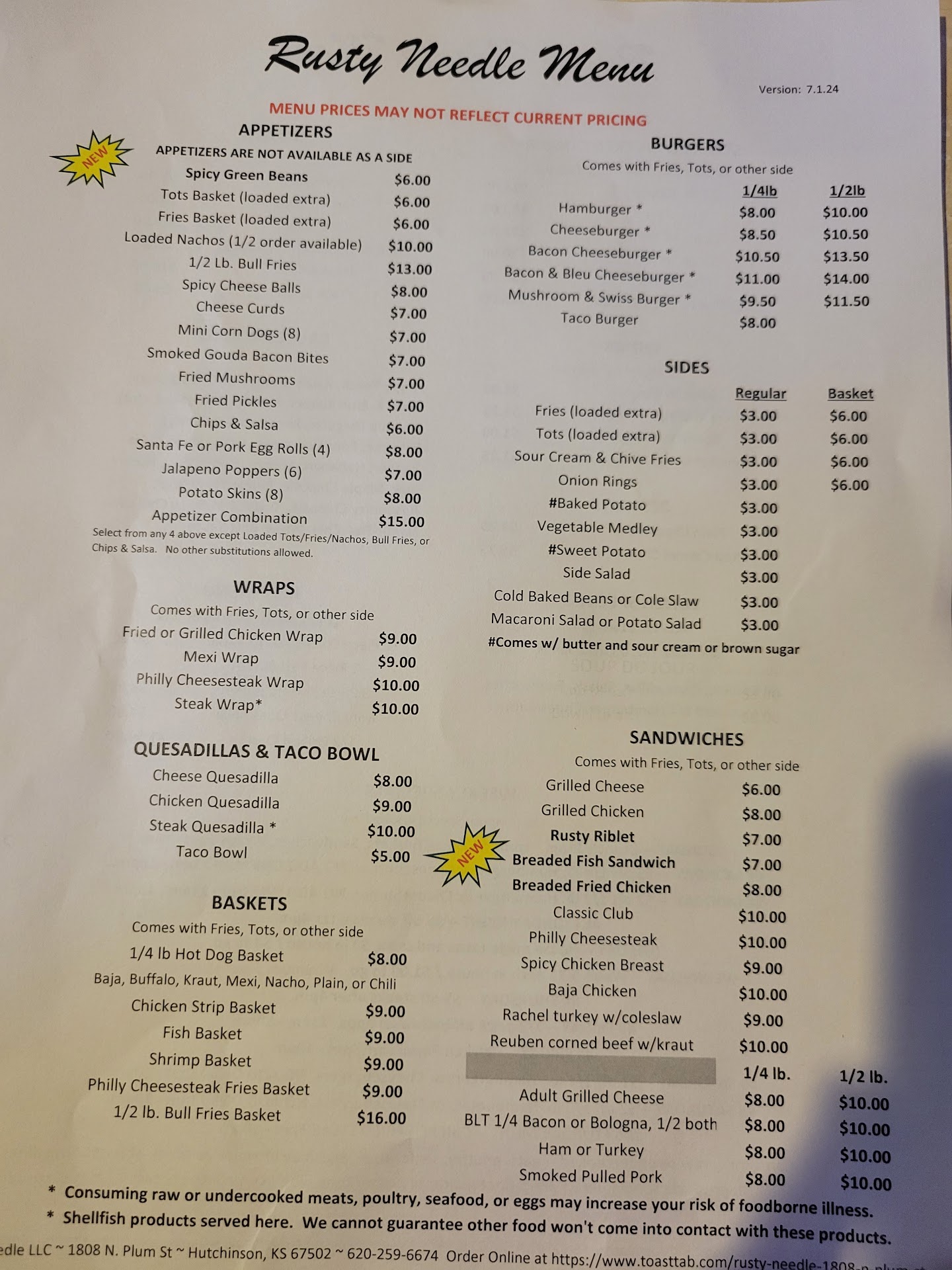 Read moreThe Rusty Needle during lunchtime is the place to go. They have deals that vary daily to sit everyone's preferred bar food. The wings are by far the best in town. The extreme wings are among some of the spiciest and best tasting in the city. Some of the best bartenders in town work here, and they know how to treat their customers right. They also have a good selection of tap beers, which are my favorite. Whether it is for Monday night trivia, weekend sports, or just need a spot for a drink, there's no better place in Hutchinson than The...