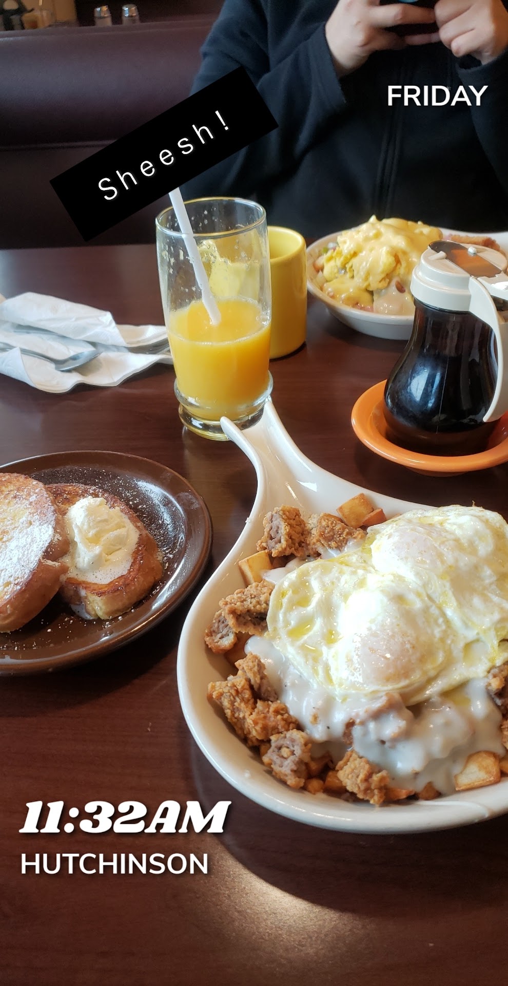 In my opinion this was the worst breakfast I have ever paid for. The restroom had no hand towels or dryer. The waitress would carry the food out on top of her shoulder w her face up against a customer's plate (3 times I witnessed this).
