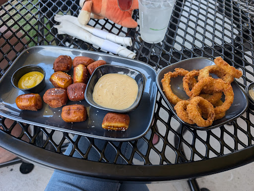 The food is good - I recommend the burnt ends. They were so tender and had great flavor. I bit on the spicy side. The miso Caesar salad with salmon was also good. The French fries were awesome. My mother in law was not a big fan of the enchilada meatloaf, but did enjoy the Reuben. The brussell sprouts are cooked very well, but the balsamic vinegar is a touch overpowering. Live music was good. They have a wide array of local brews and fun cocktails, as well as mocktail options. They have a great outdoor area with playground! Lots of kids were playing outside on the play place. Tables were bussed and pre-bussed quickly. Hostesses were sweet! Food runners were helpful and fast. Good job front of house.