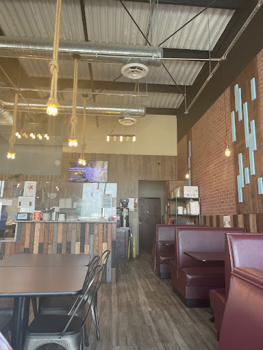 ATMOSPHERE: It was clean. I'll give them that. But... The decor is incredibly hodge-podge. It's not welcoming or interesting at all. I counted 9 different styles of wood paneling installed on the walls. They clashed with each other and the floor and the tables. It made no sense. You walk in to a ridiculously large menu and 2 kiosks.